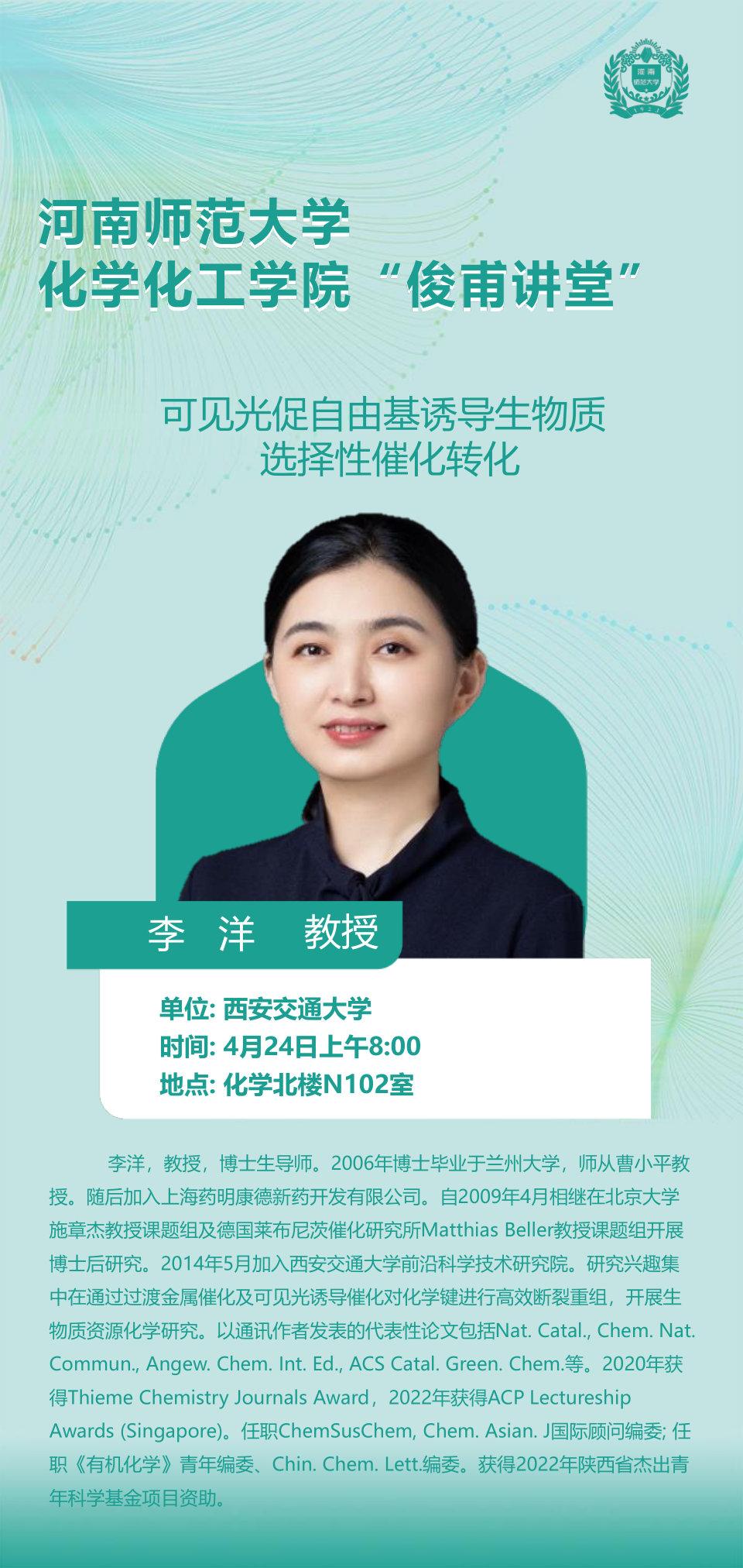 西安交通大学李洋教授将应邀做客“俊甫讲堂”
