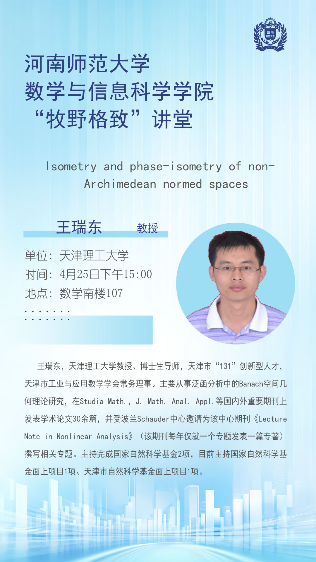 天津理工大学王瑞东教授将应邀做客“牧野格致”讲堂