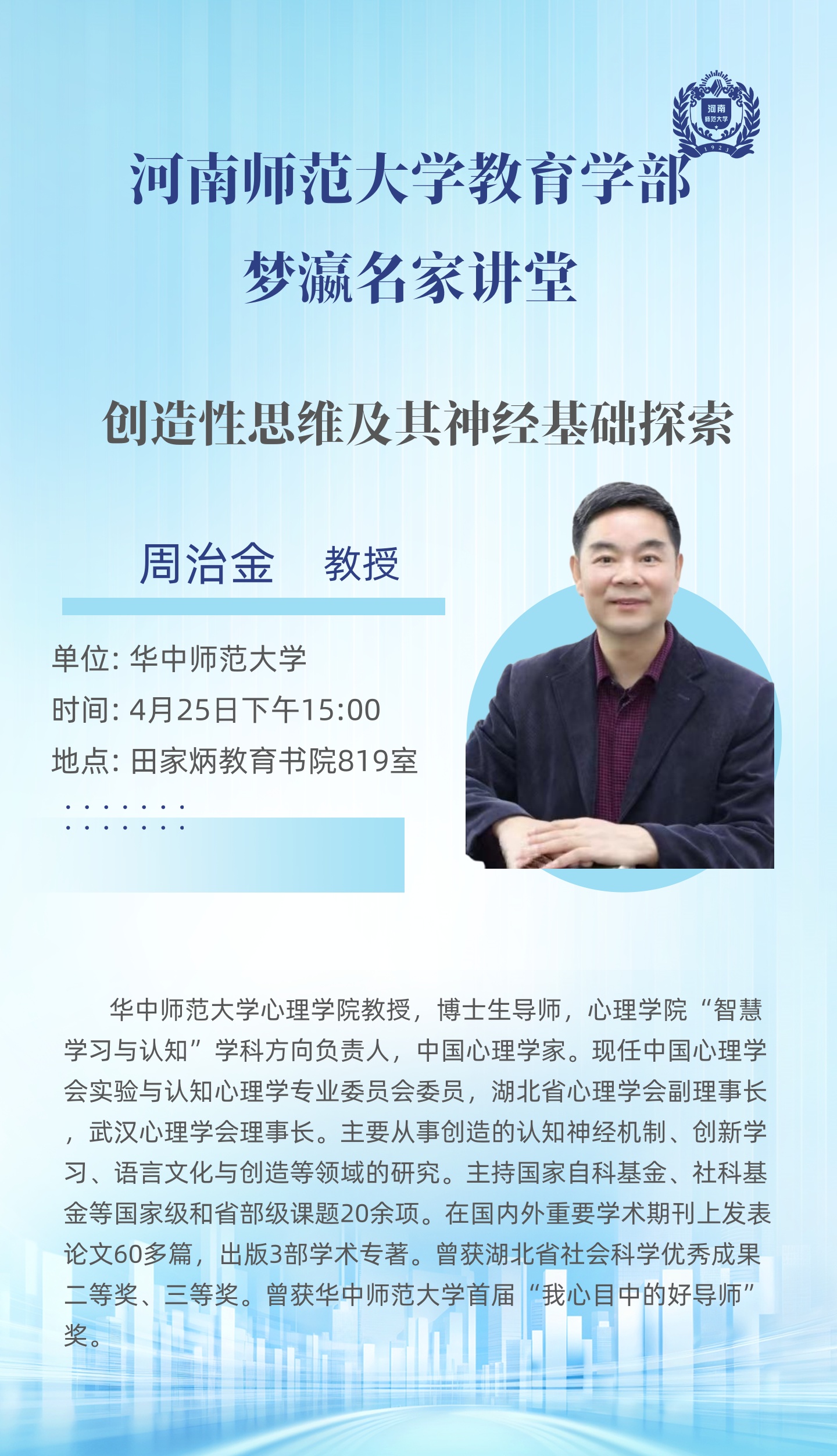 华中师范大学周治金教授将应邀做客“梦瀛名家讲堂”