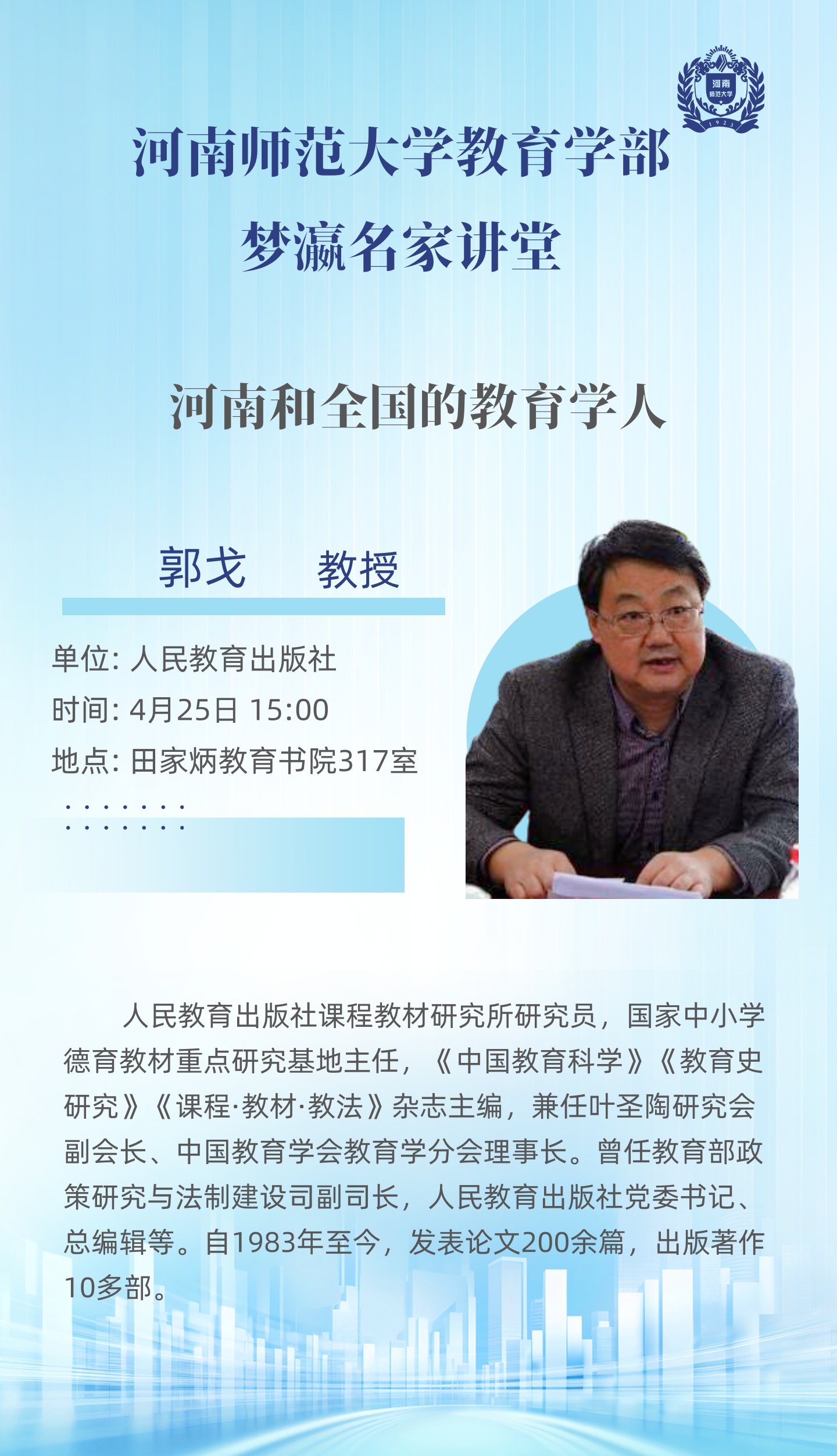 人民教育出版社郭戈教授将应邀做客“梦瀛名家讲堂”
