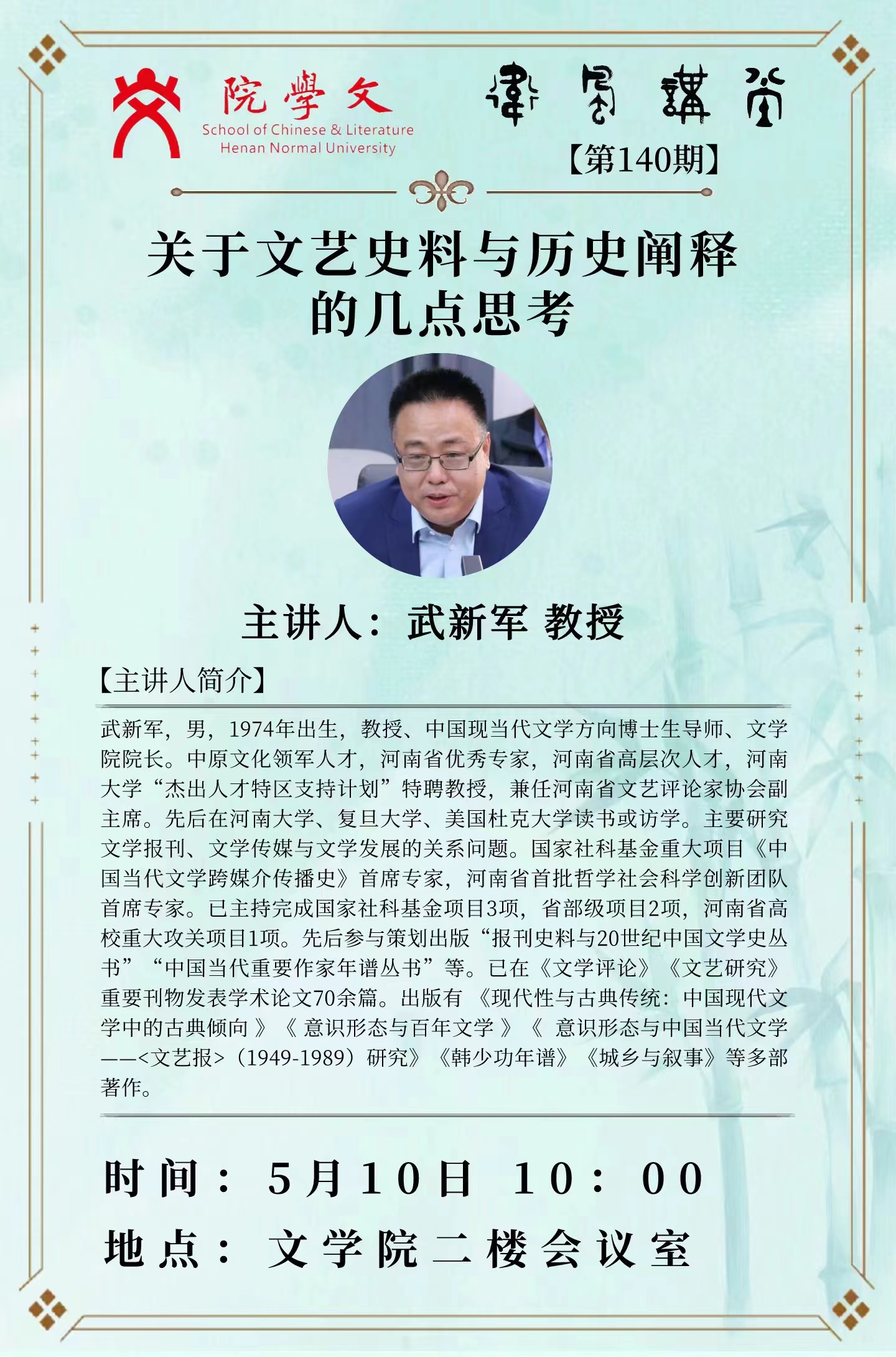 河南大学武新军教授将应邀做客“卫风讲堂”