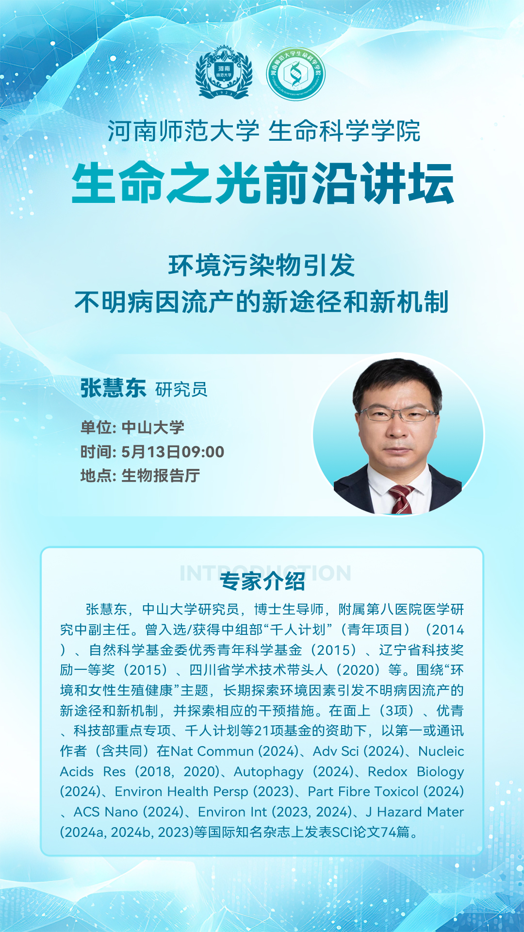 中山大学张慧东研究员将应邀做客“生命之光前沿讲坛”