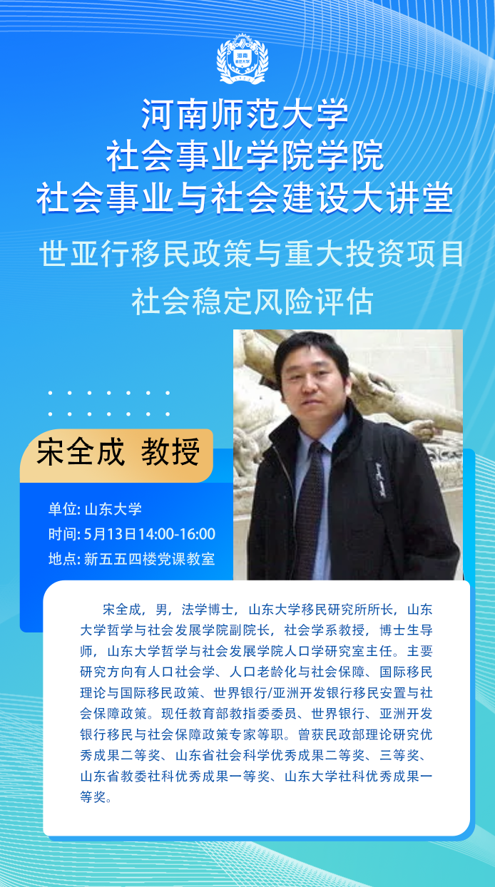 山东大学哲学与社会发展学院宋全成教授将应邀做客社会事业与社会建设大讲堂