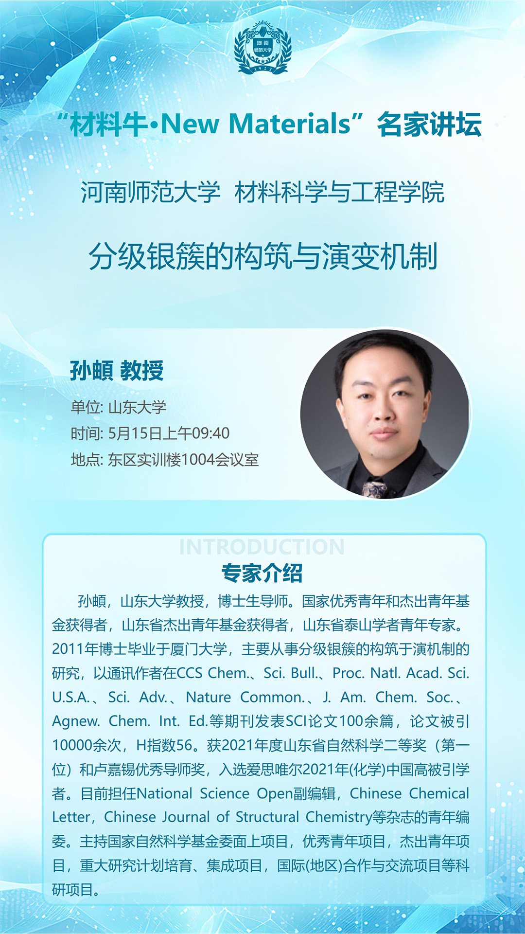 山东大学孙頔教授将应邀做客“材料牛·New Materials”名家讲坛