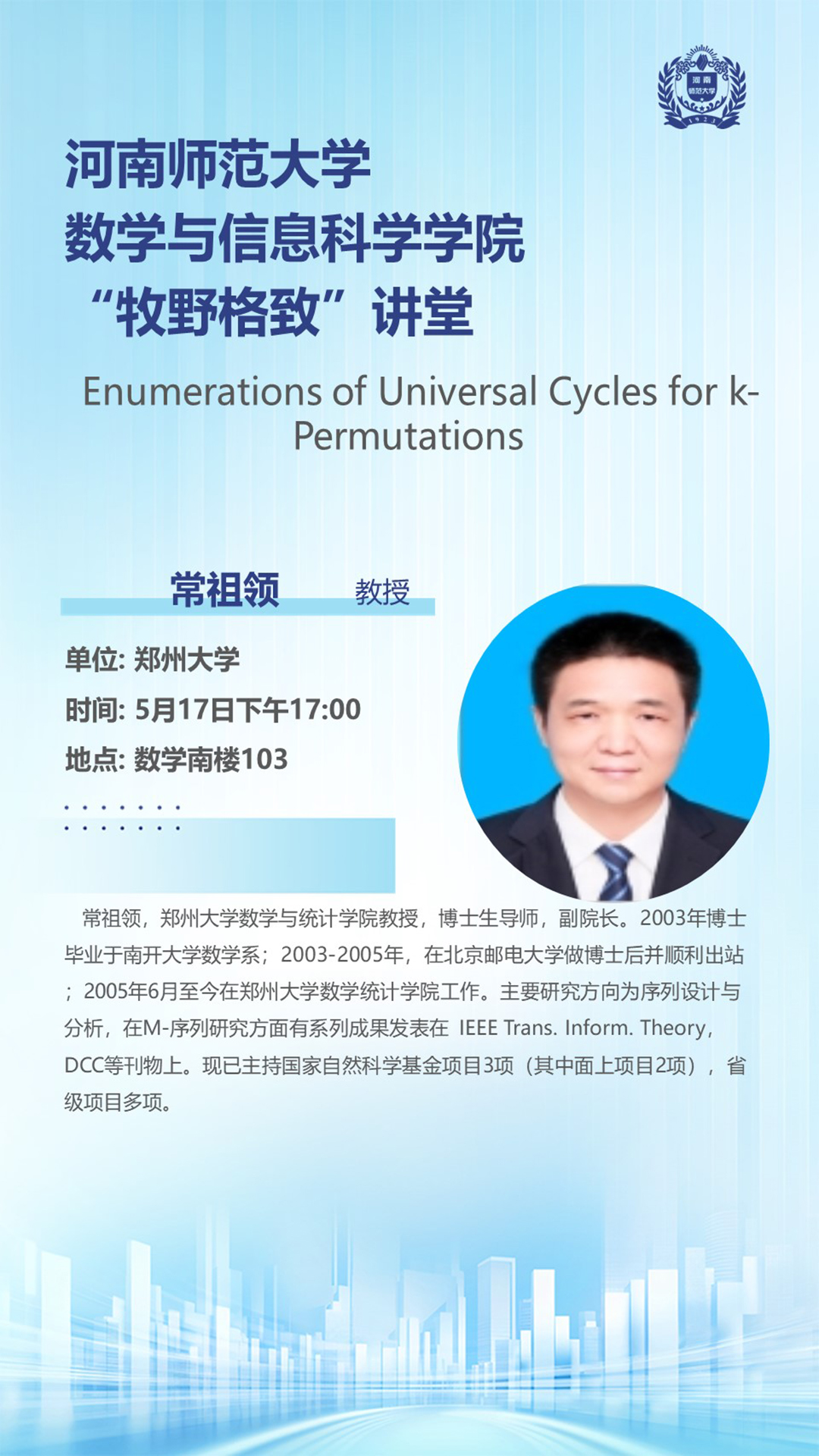 郑州大学常祖领教授将应邀做客“牧野格致”讲堂