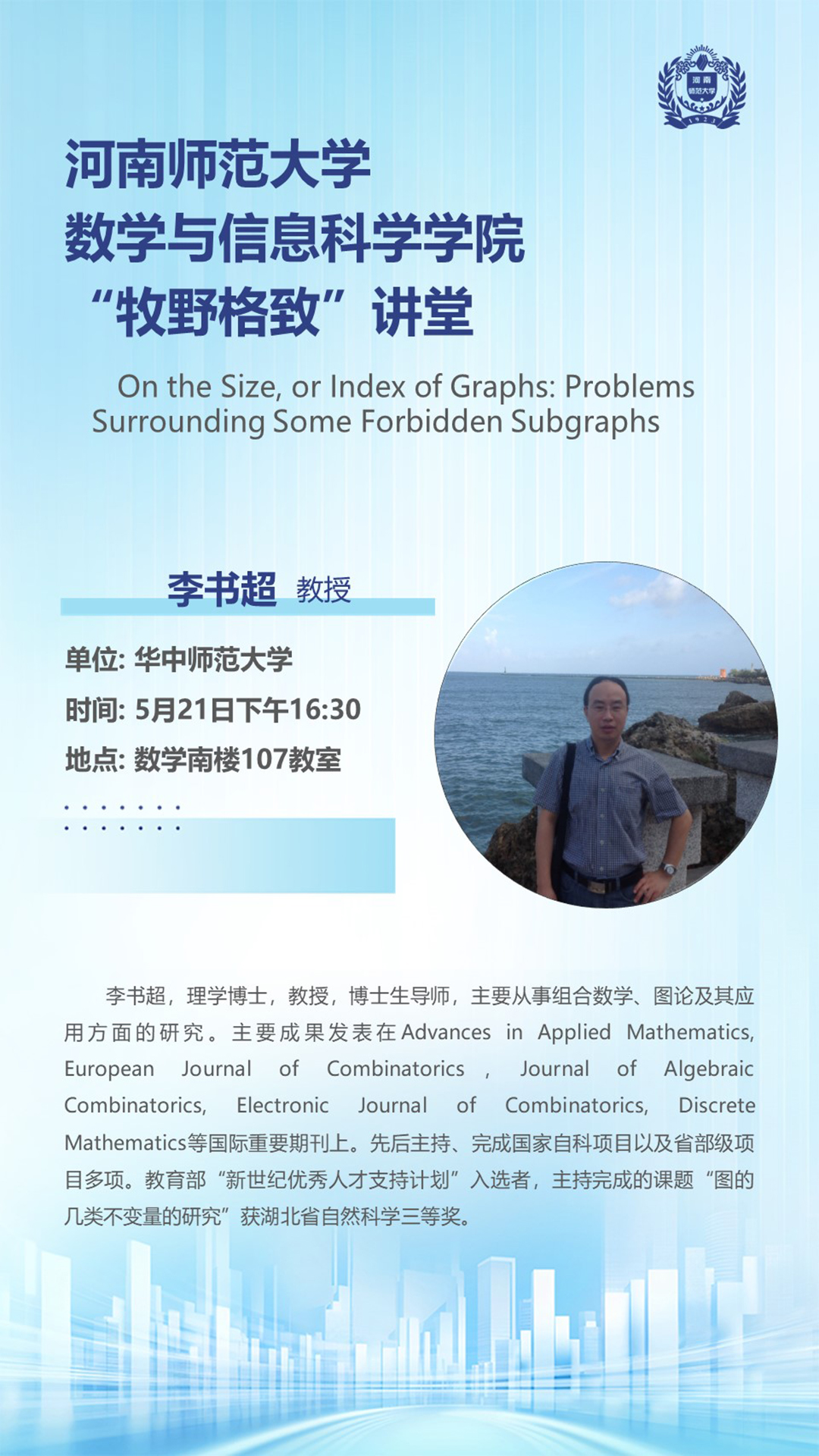华中师范大学李书超教授将应邀做客“牧野格致”讲堂