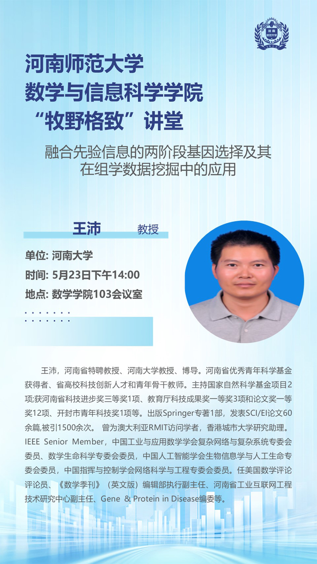 河南大学王沛教授将应邀做客“牧野格致”讲堂
