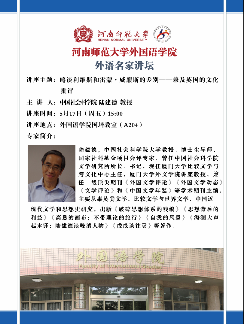 中国社会科学院陆建德教授将应邀做客“外语名家讲坛”