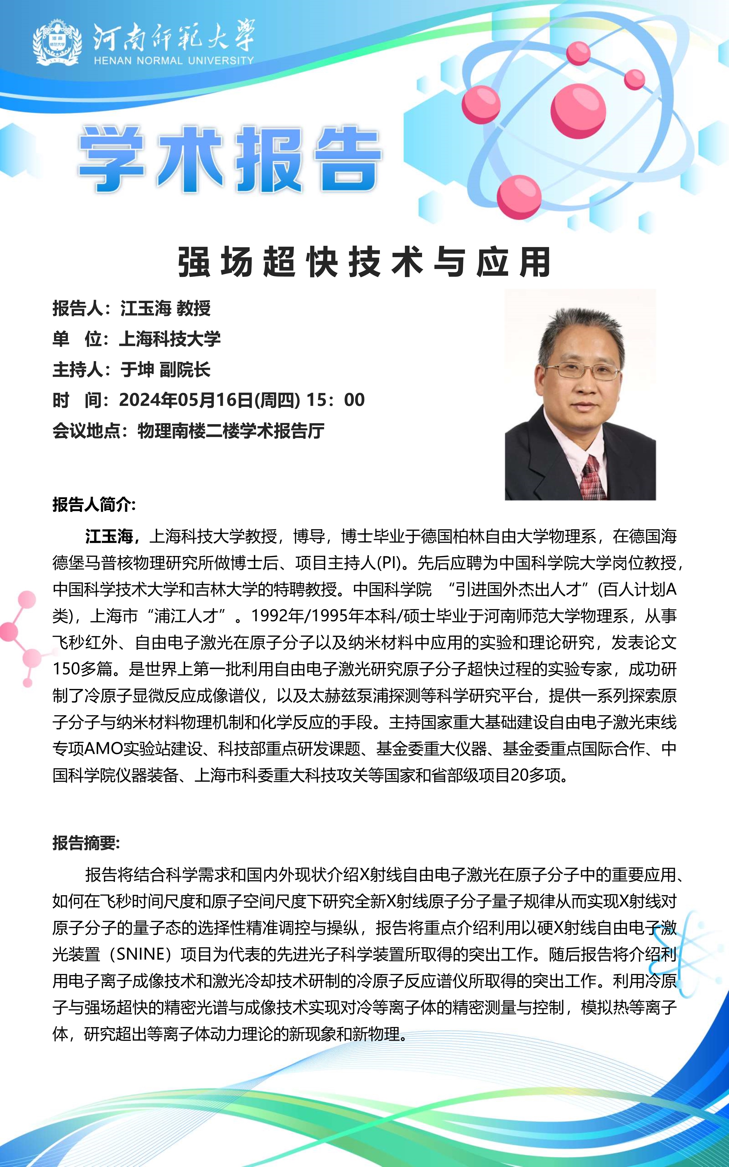 上海科技大学江玉海教授将应邀做客“八角楼”讲坛