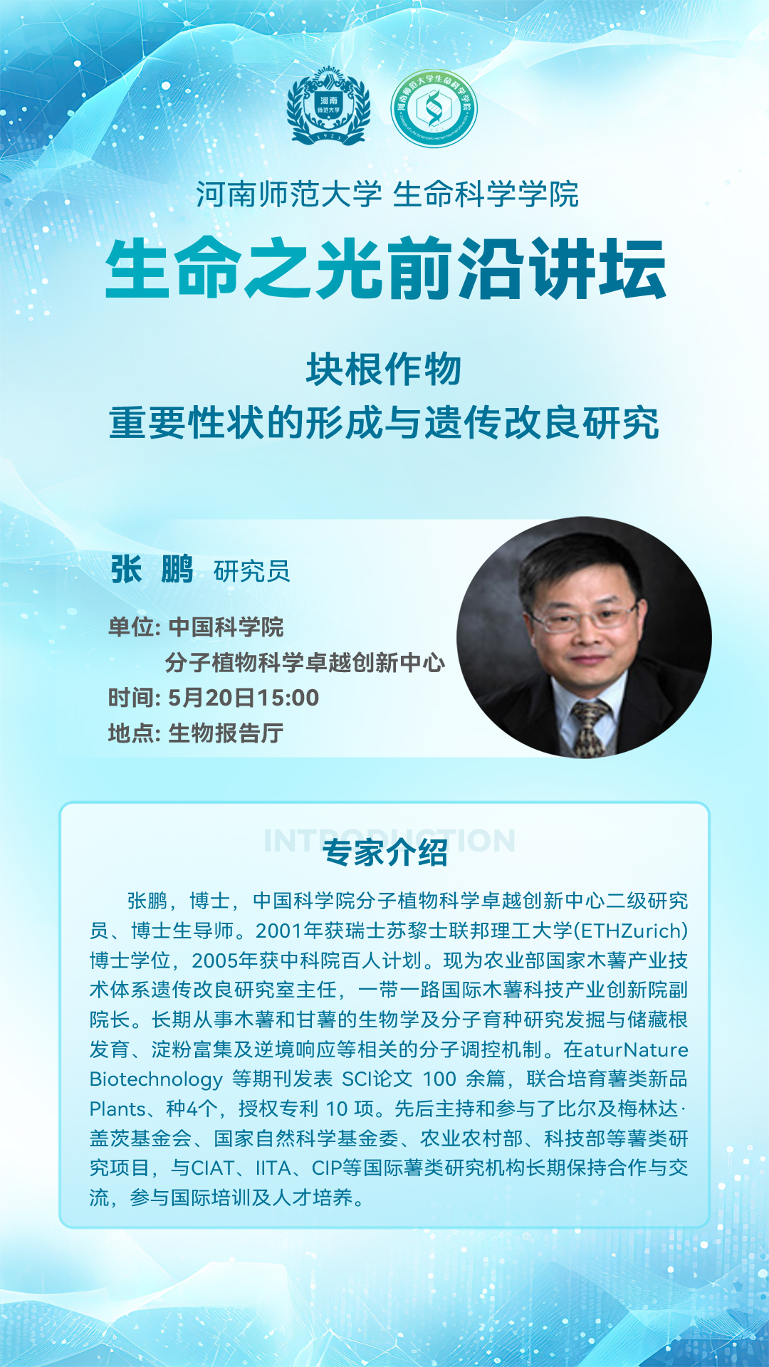 中国科学院分子植物科学卓越创新中心张鹏研究员将应邀做客“生命之光前沿讲坛”
