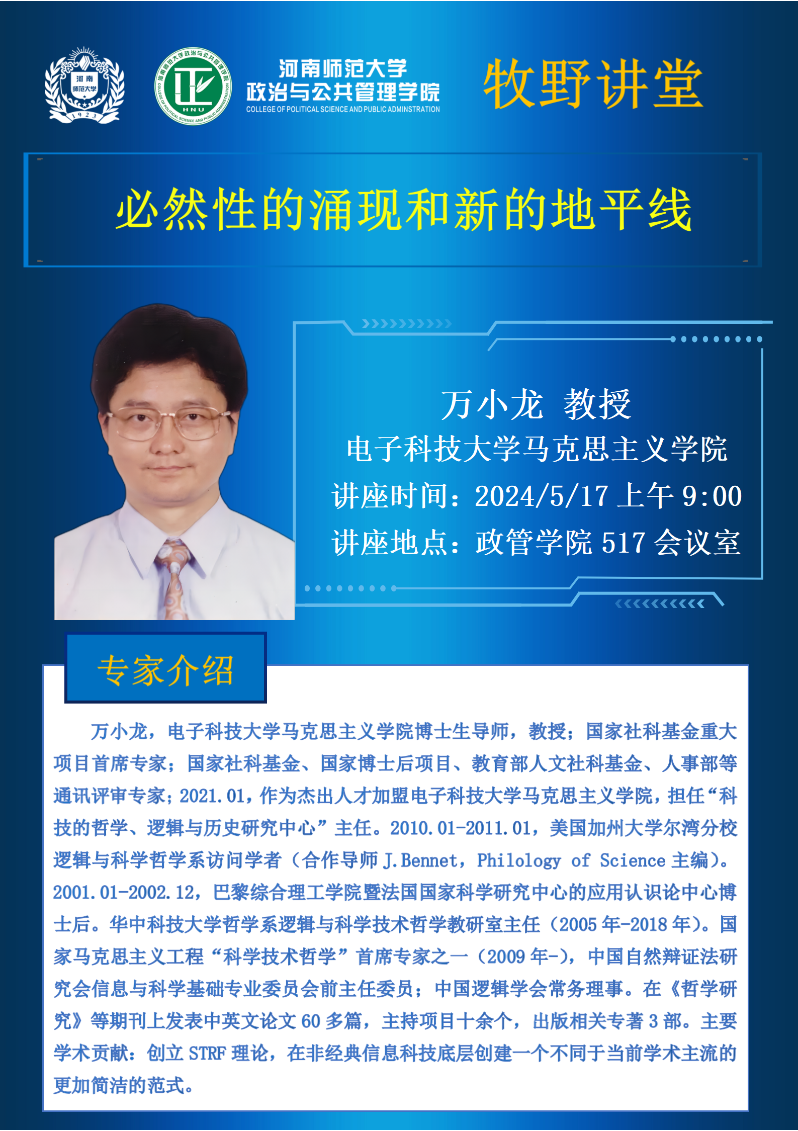 电子科技大学马克思主义学院万小龙教授将应邀做客牧野讲堂·博雅论坛