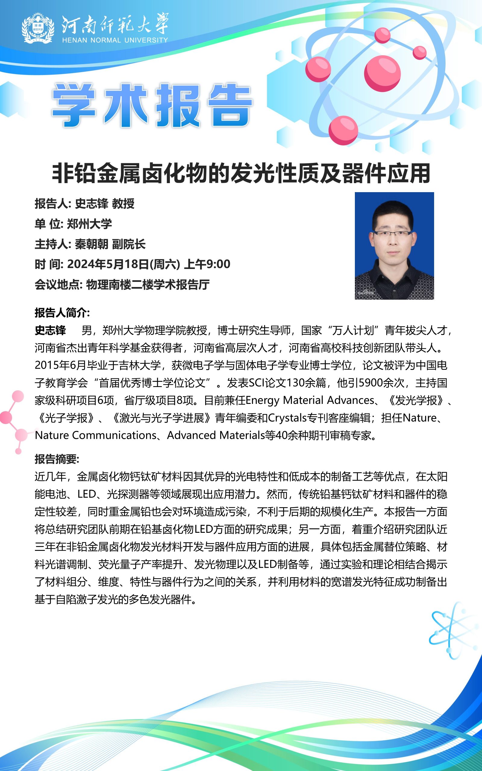郑州大学史志锋教授将应邀做客“八角楼”讲坛