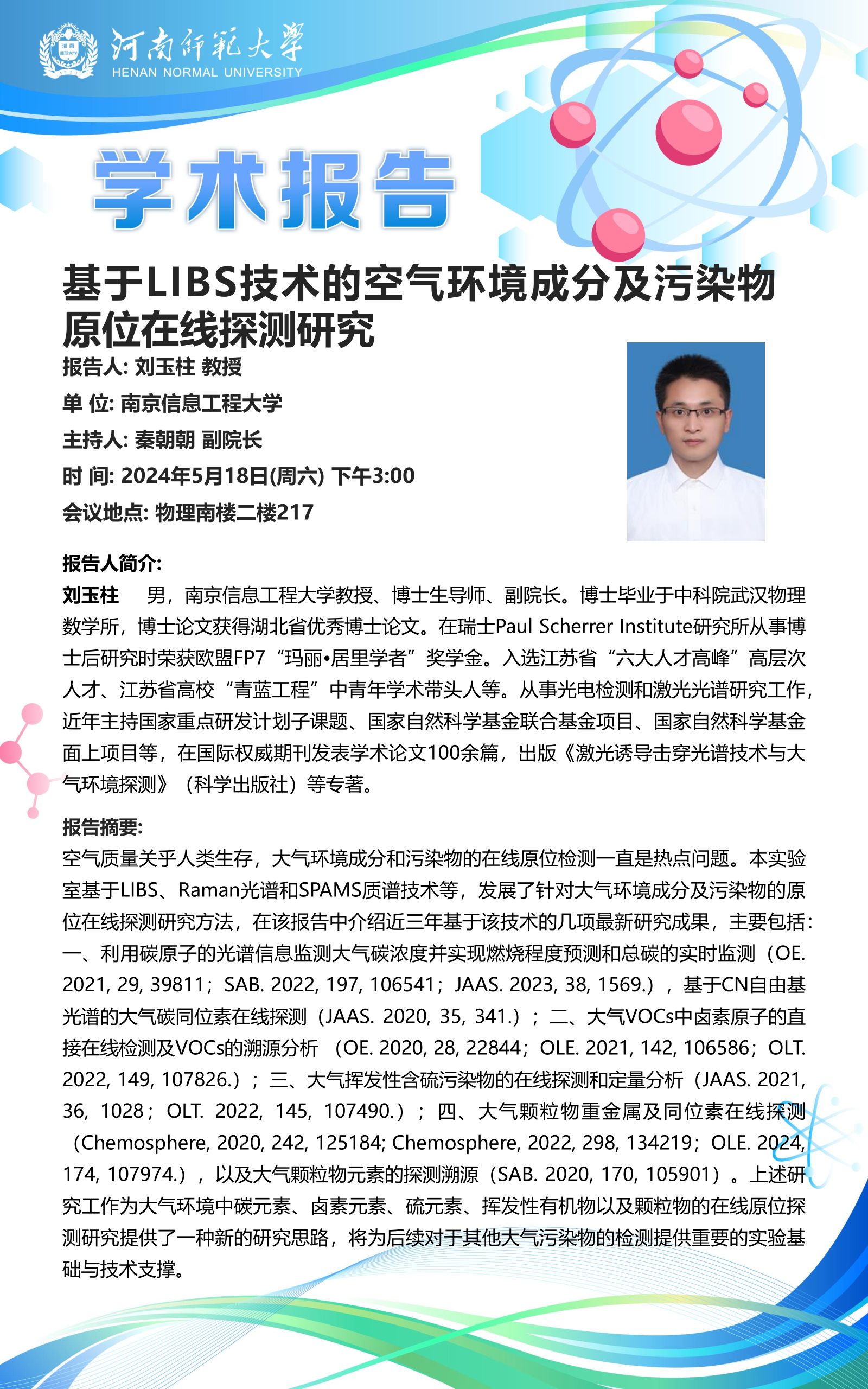南京信息工程大学刘玉柱教授将应邀做客“八角楼”讲坛