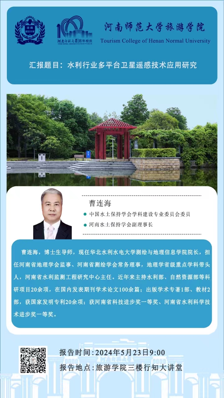 华北水利水电大学测绘与地理信息学院曹连海院长将应邀做客高端专家行知讲坛