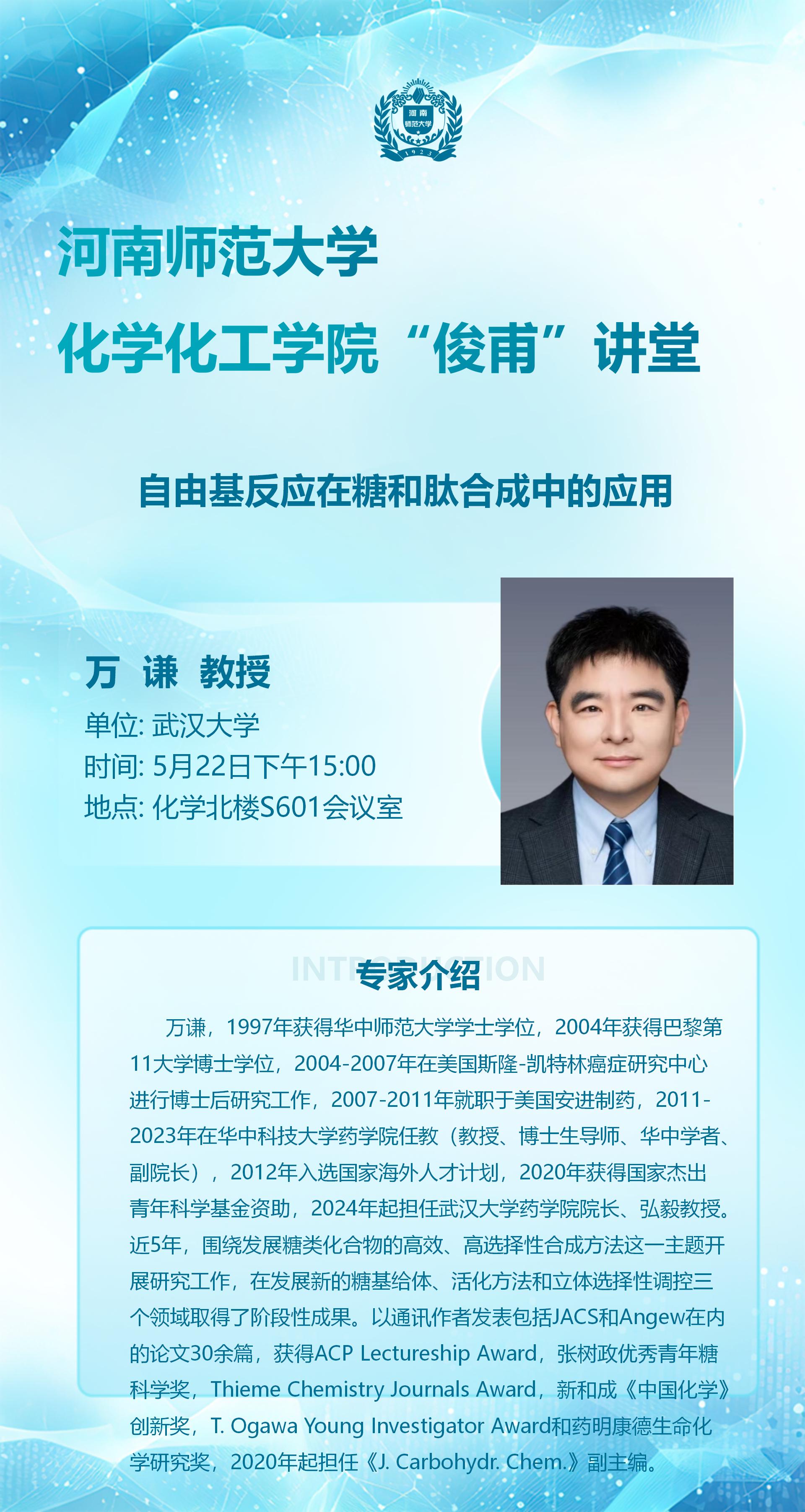 武汉大学万谦教授将应邀做客“俊甫讲堂”