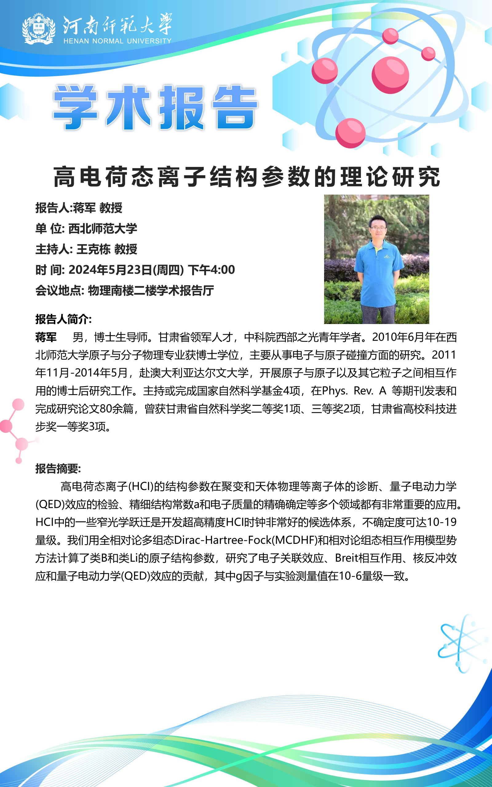 西北师范大学蒋军教授将应邀做客“八角楼”讲坛
