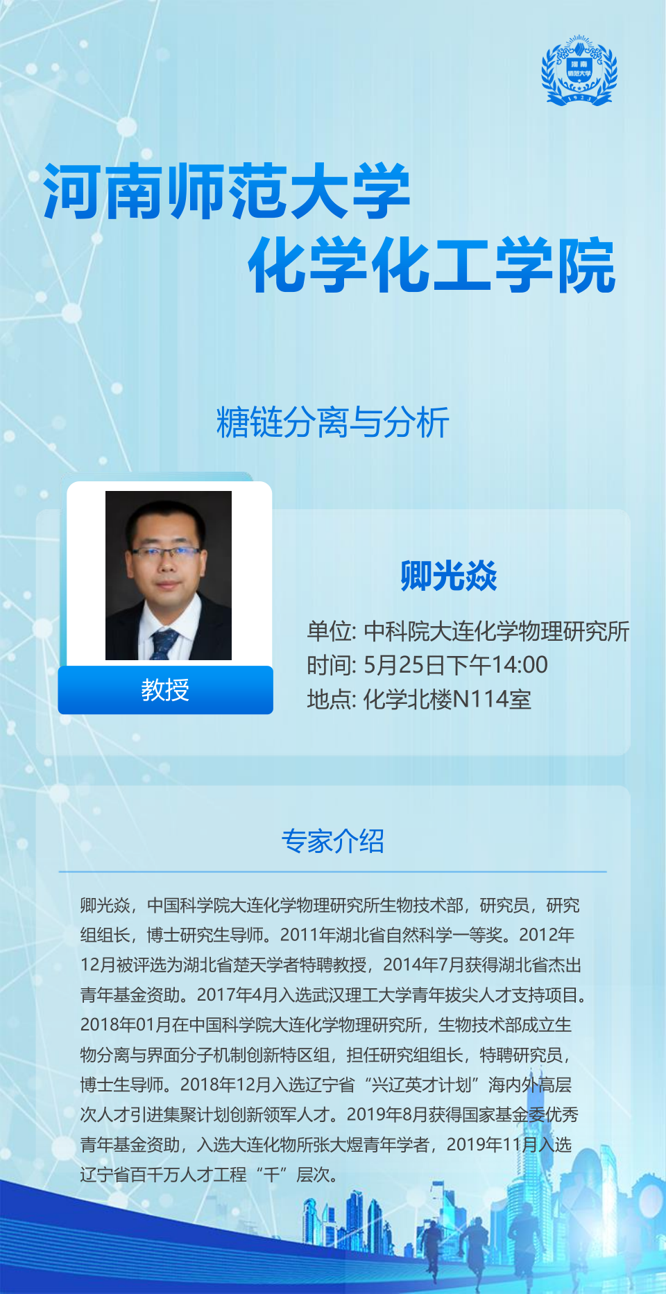 中国科学院大连化学物理研究所卿光焱教授将应邀做客“俊甫讲堂”
