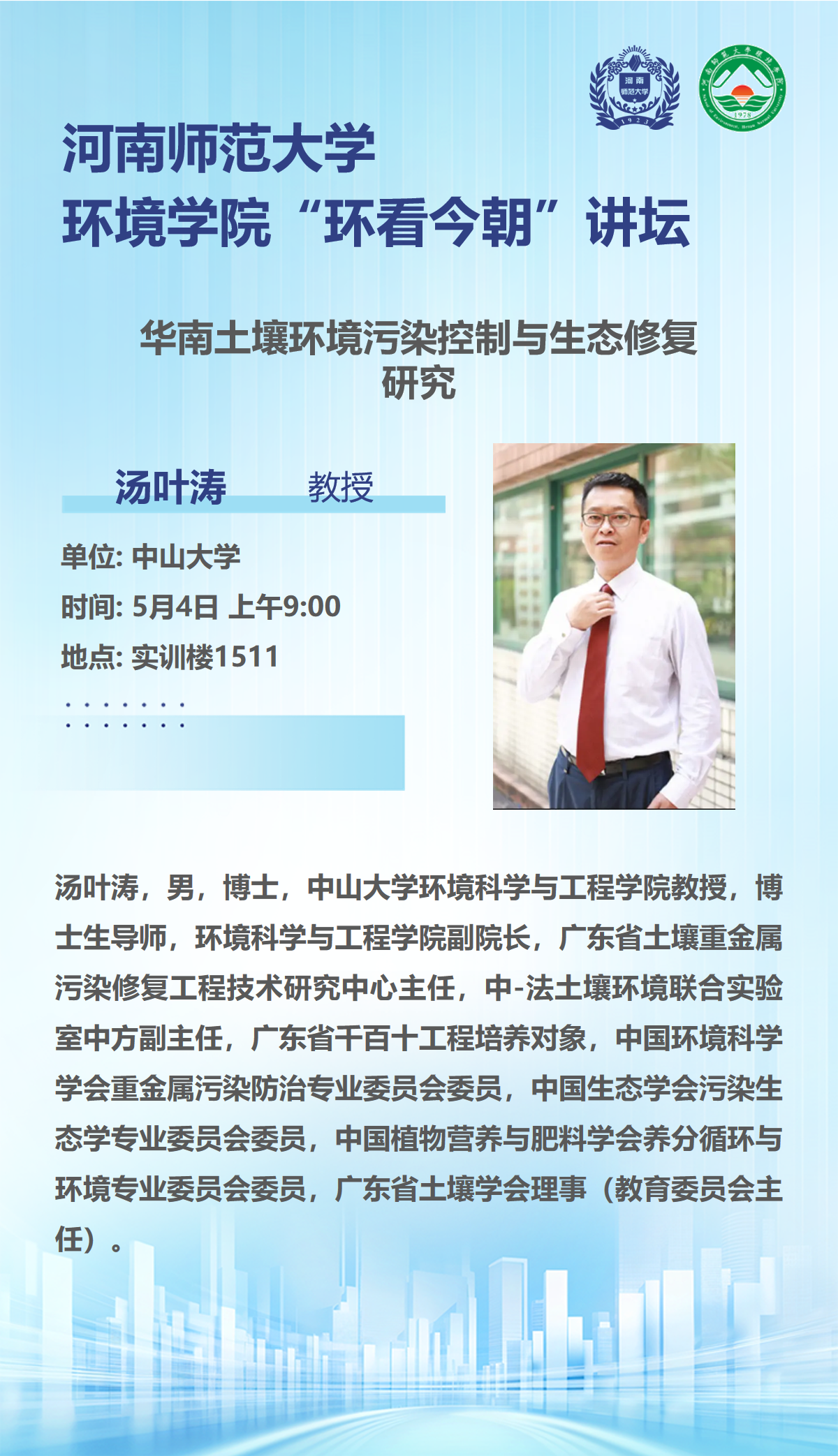 中山大学汤叶涛教授将应邀做客“环看今朝”讲坛