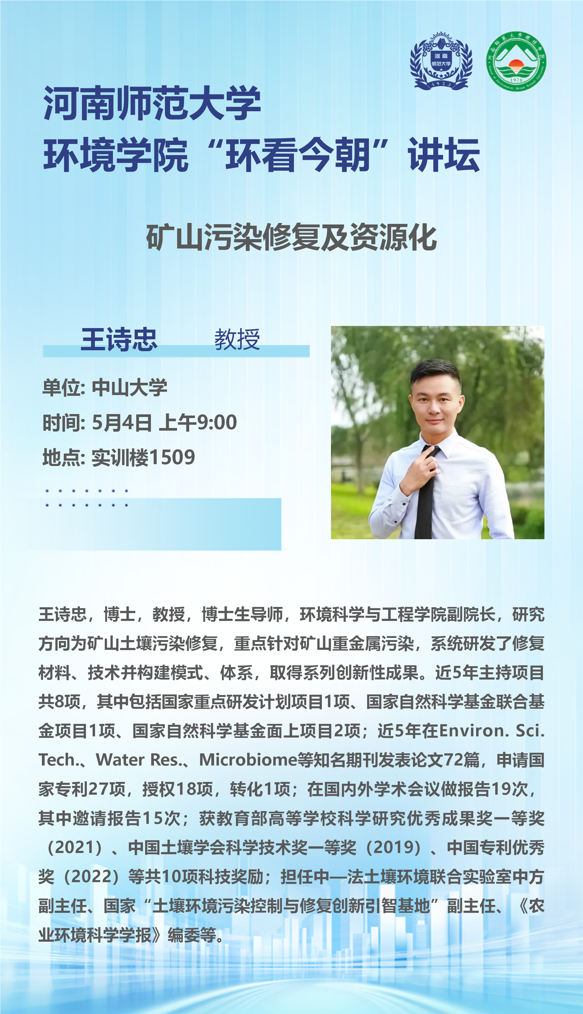中山大学王诗忠教授将应邀做客“环看今朝”讲坛