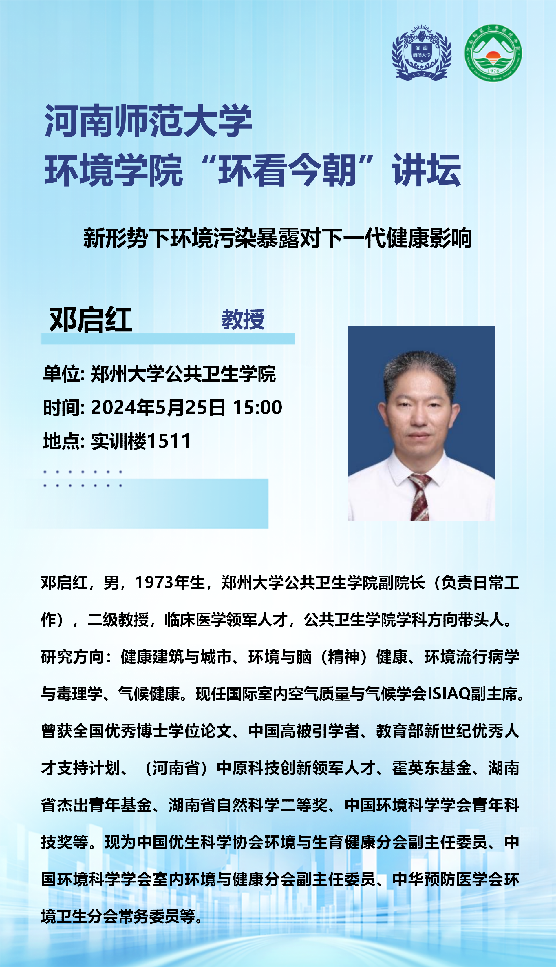 郑州大学邓启红教授将应邀做客“环看今朝”讲坛