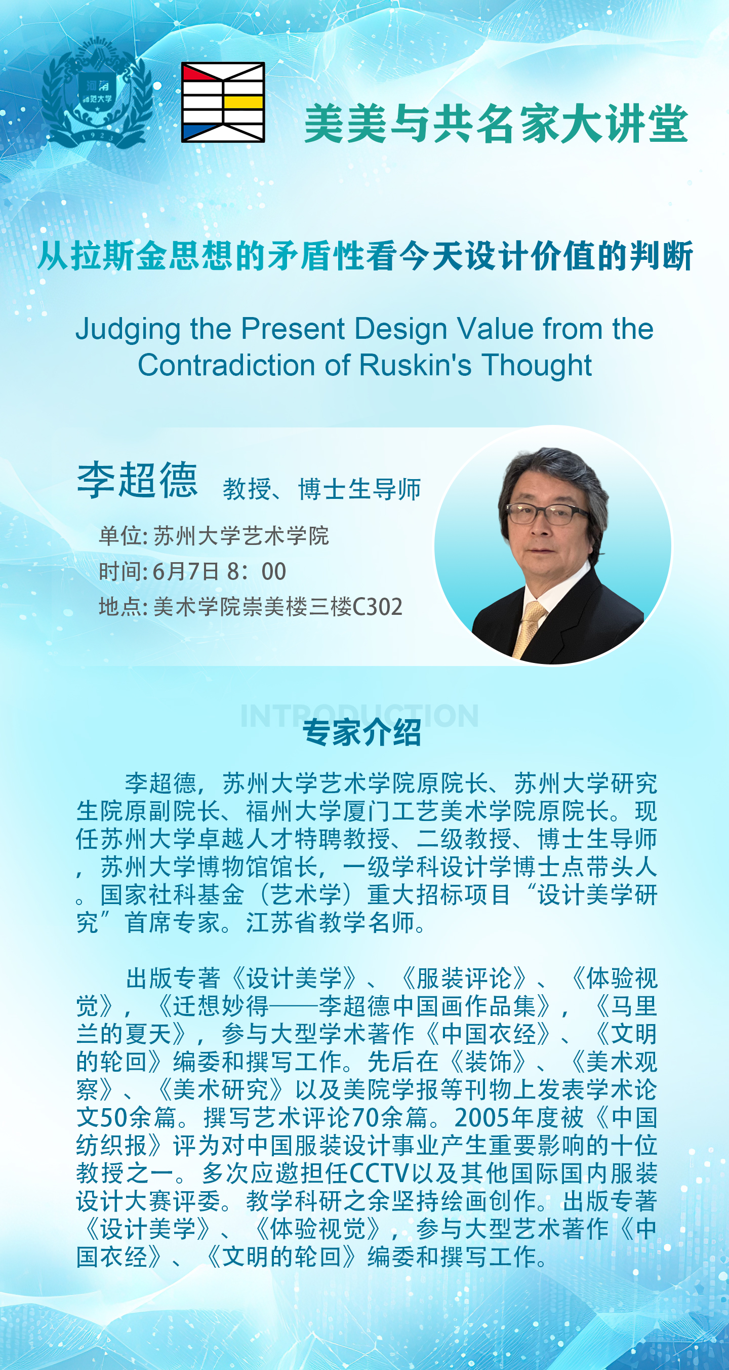 苏州大学艺术学院李超德教授将应邀做客美美与共名家大讲堂