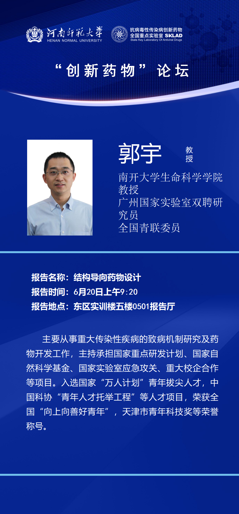 南开大学郭宇教授将应邀做客“创新药物”论坛