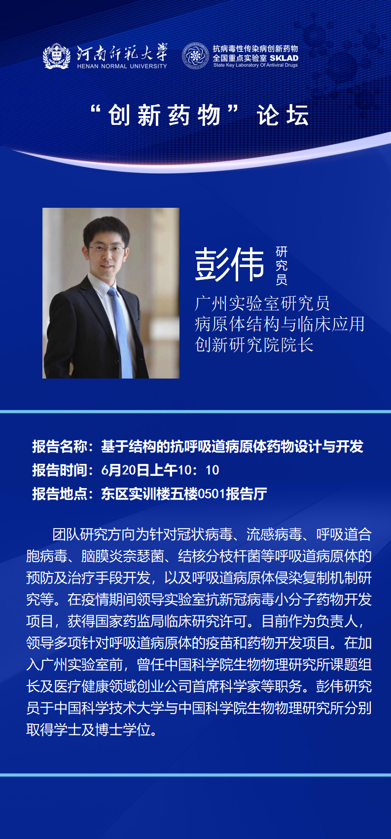 广州实验室彭伟研究员将应邀做客“创新药物”论坛