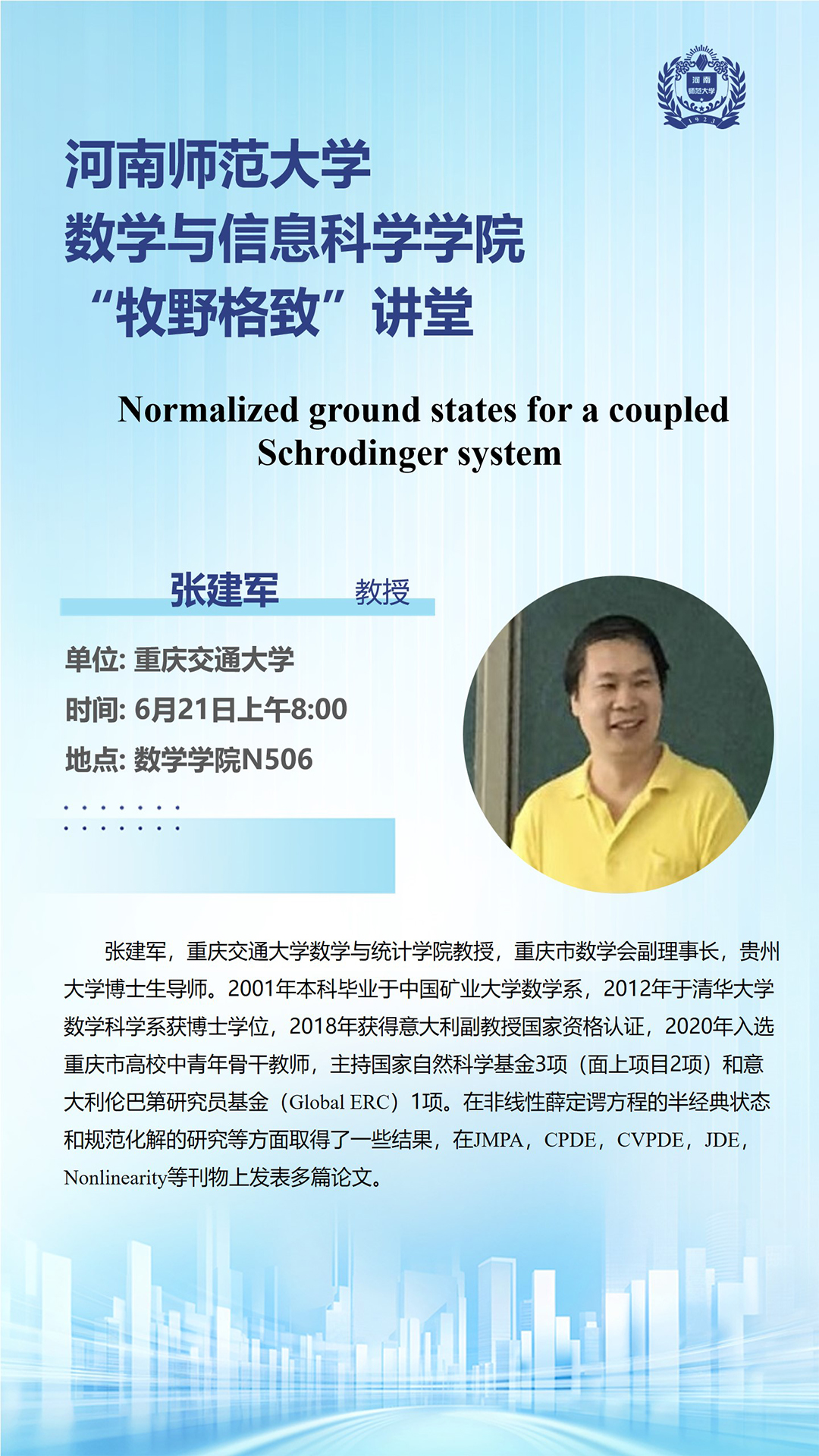重庆交通大学张建军教授将应邀做客“牧野格致”讲堂