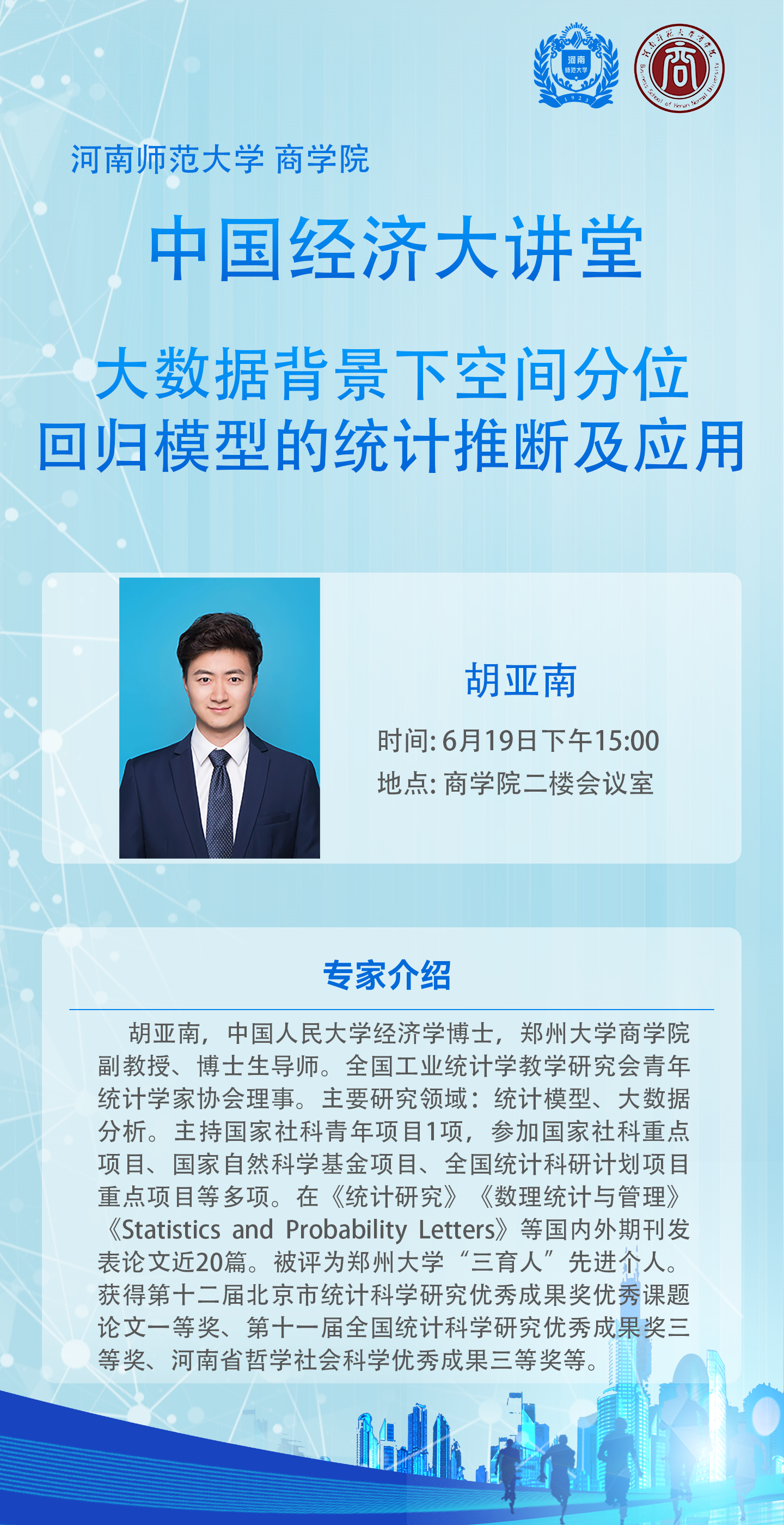 郑州大学胡亚南副教授将应邀做客“中国经济大讲堂”