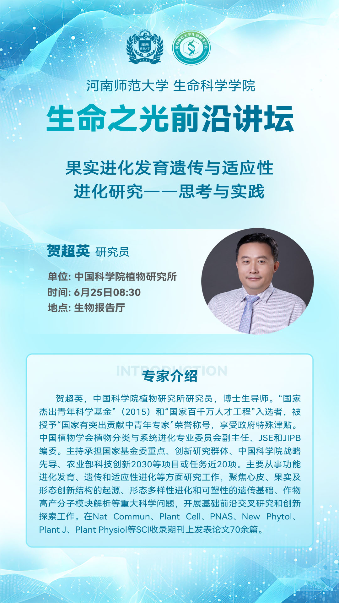中国科学院植物研究所贺超英研究员将应邀做客“生命之光前沿讲坛”