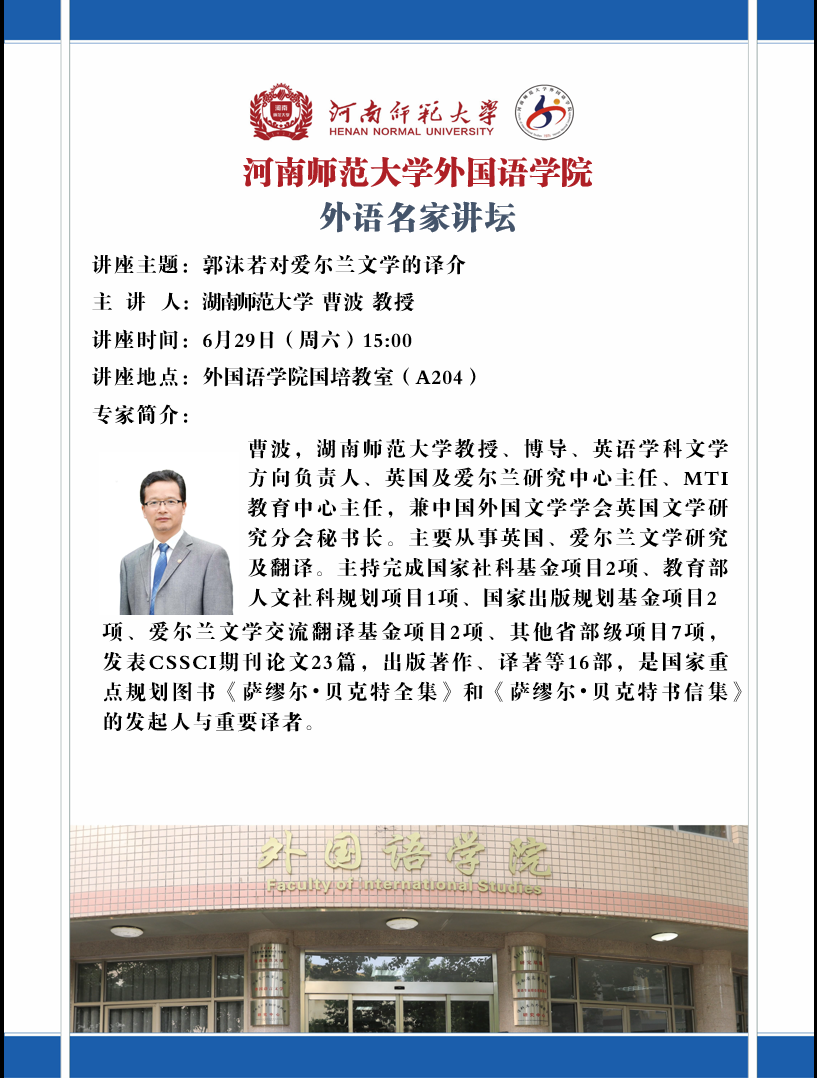 湖南师范大学曹波教授将应邀做客外语名家讲坛
