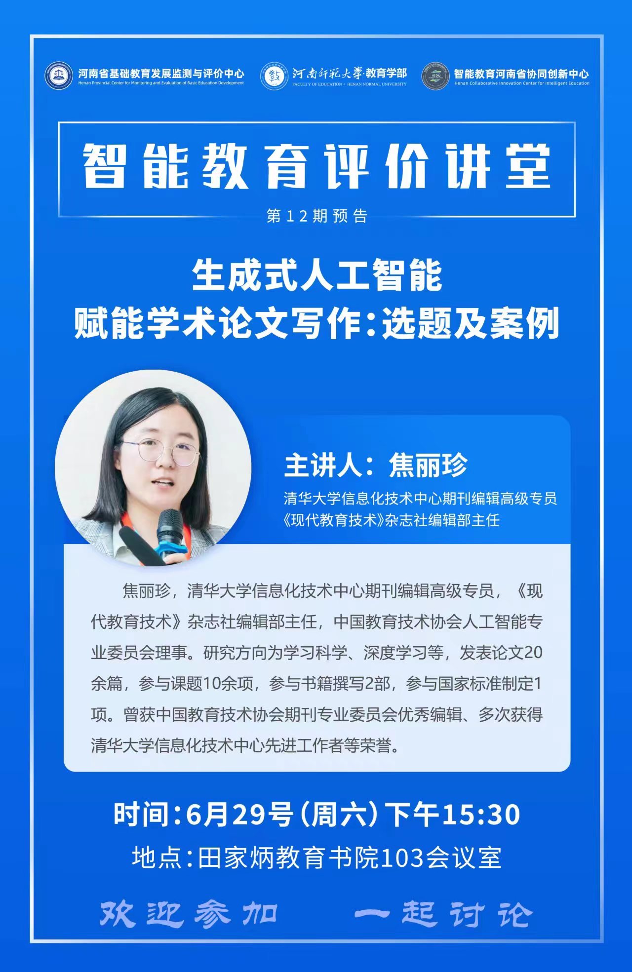 清华大学信息化技术中心期刊编辑高级专员焦丽珍将应邀做客智能教育评价讲堂