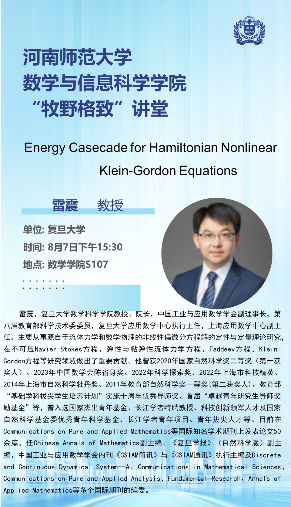 复旦大学雷震教授将应邀做客“牧野格致”讲堂