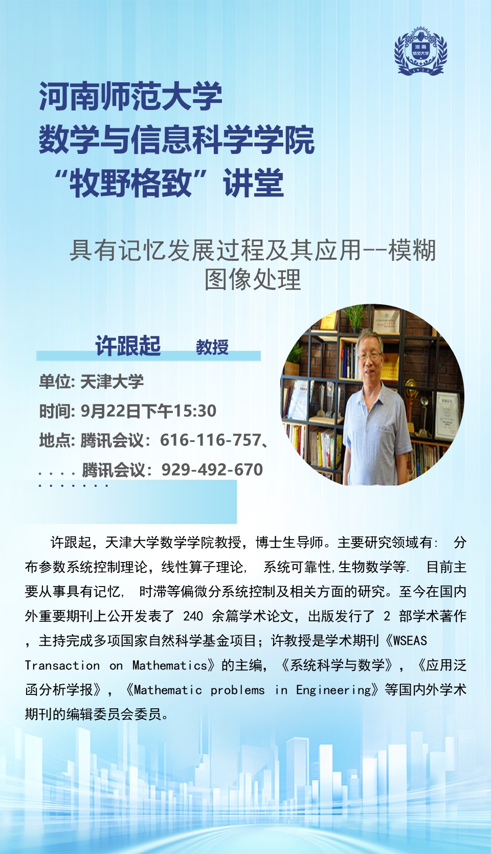 天津大学许跟起教授将应邀做客“牧野格致”讲堂