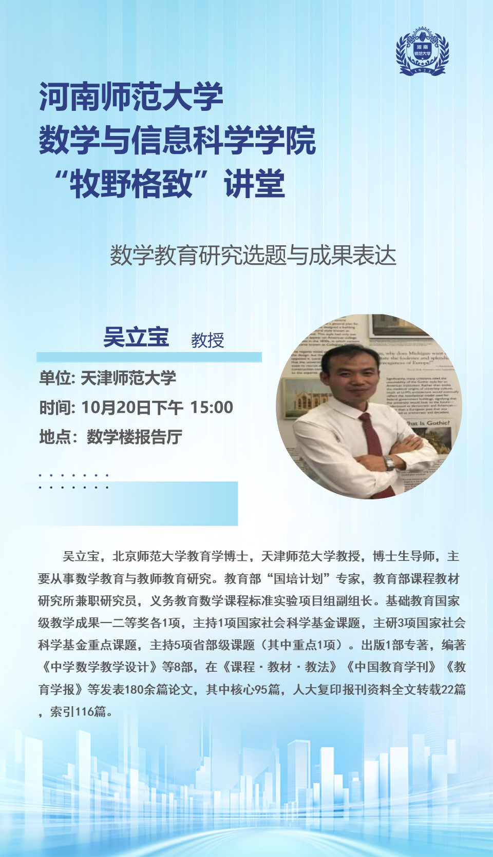 天津师范大学吴立宝教授将应邀做客“牧野格致”讲堂