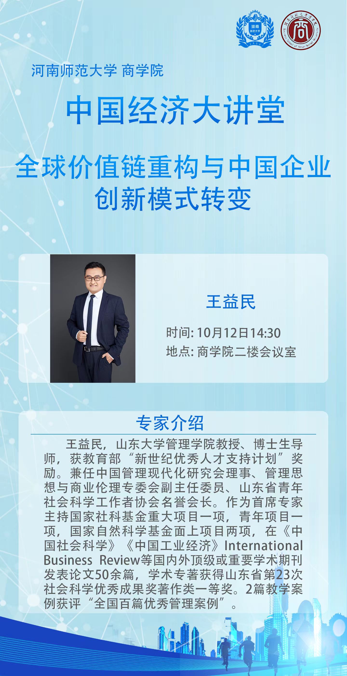 山东大学管理学院王益民教授将应邀做客中国经济大讲堂