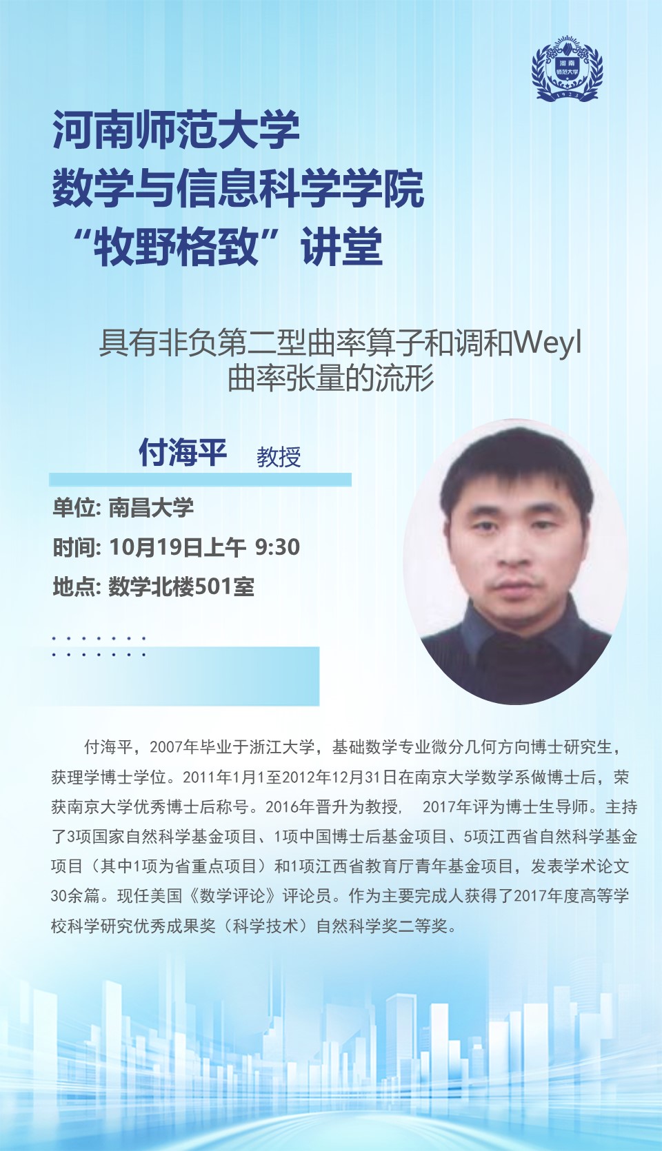 南昌大学付海平教授将应邀做客“牧野格致”讲堂