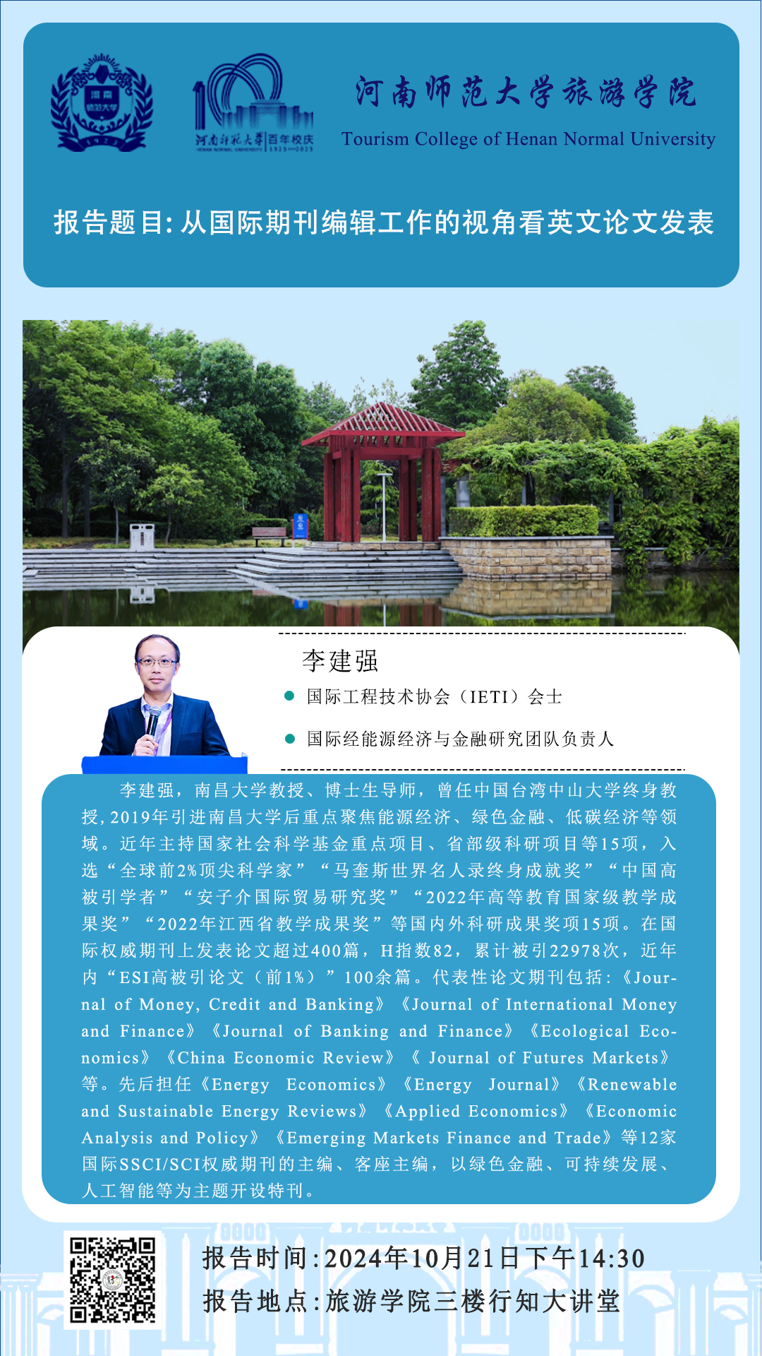南昌大学李建强教授将应邀做客“高端专家行知讲坛”