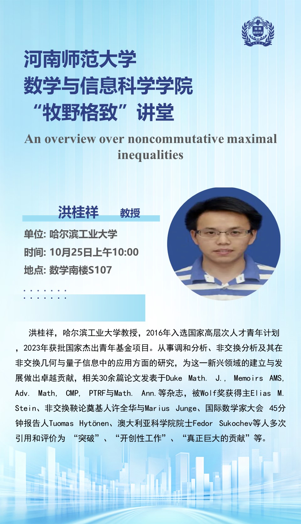 哈尔滨工业大学洪桂祥教授将应邀做客“牧野格致”讲堂