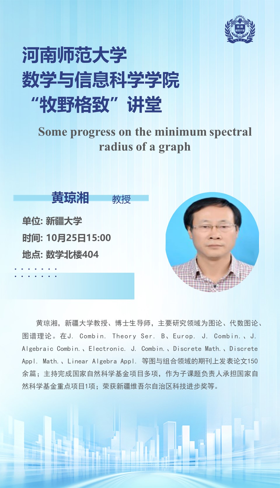新疆大学黄琼湘教授将应邀做客“牧野格致”讲堂