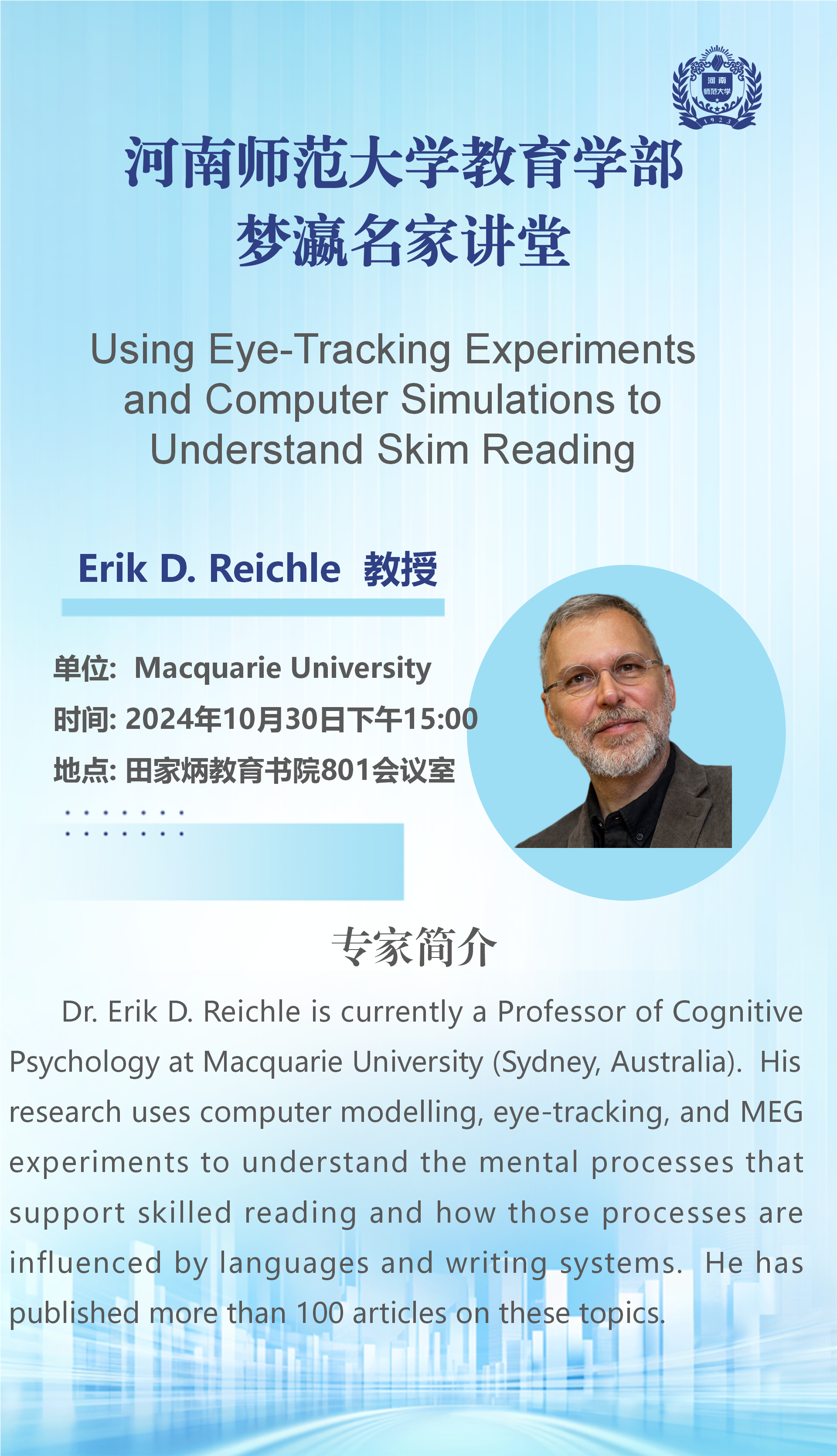 Macquarie University Erik D. Reichle 教授将应邀做客梦瀛名家讲堂