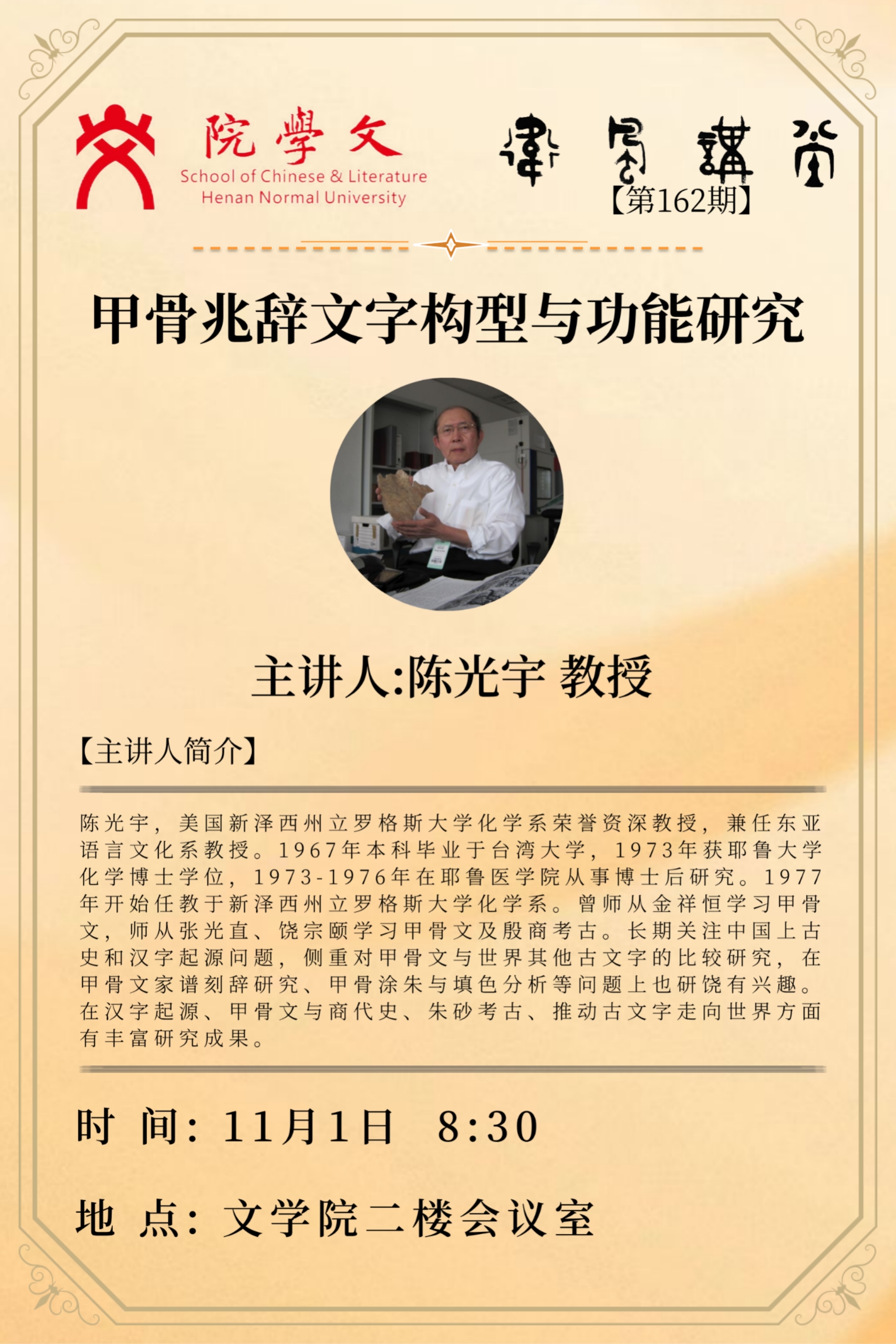 美国新泽西州立罗格斯大学资深教授陈光宇将应邀做客“卫风讲堂”