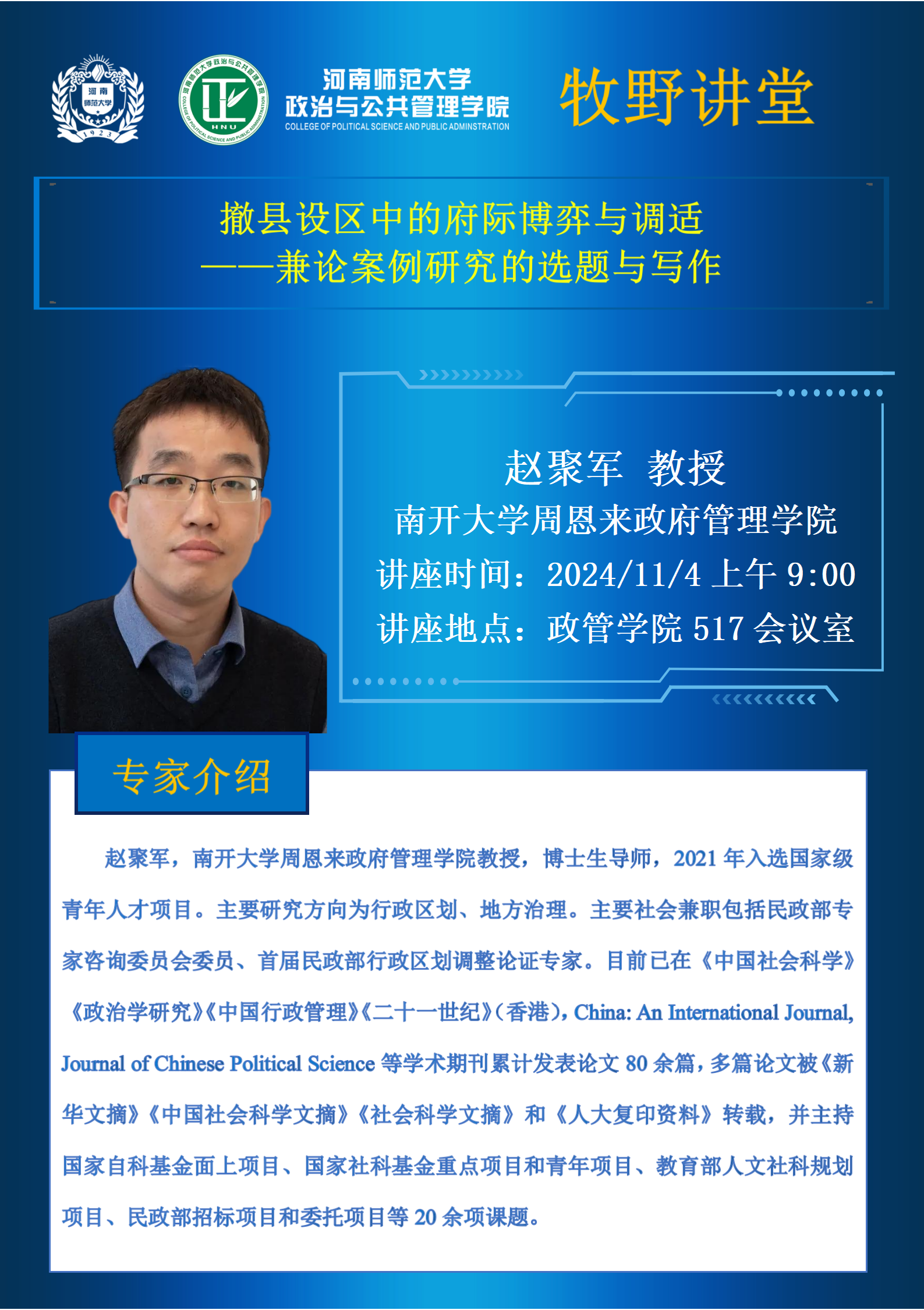 南开大学赵聚军教授将应邀做客“牧野讲堂”