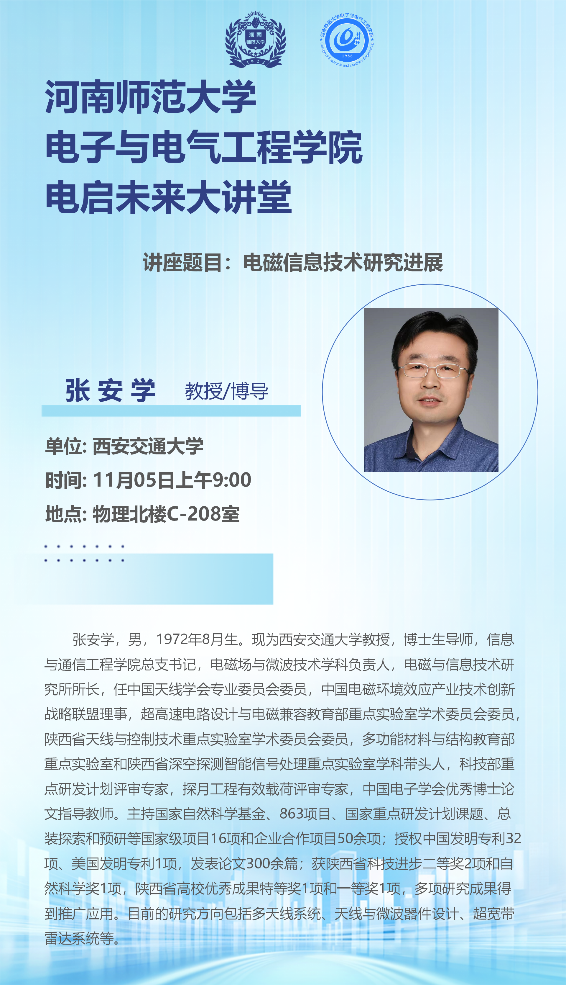 西安交通大学张安学教授将应邀做客“电启未来大讲堂”