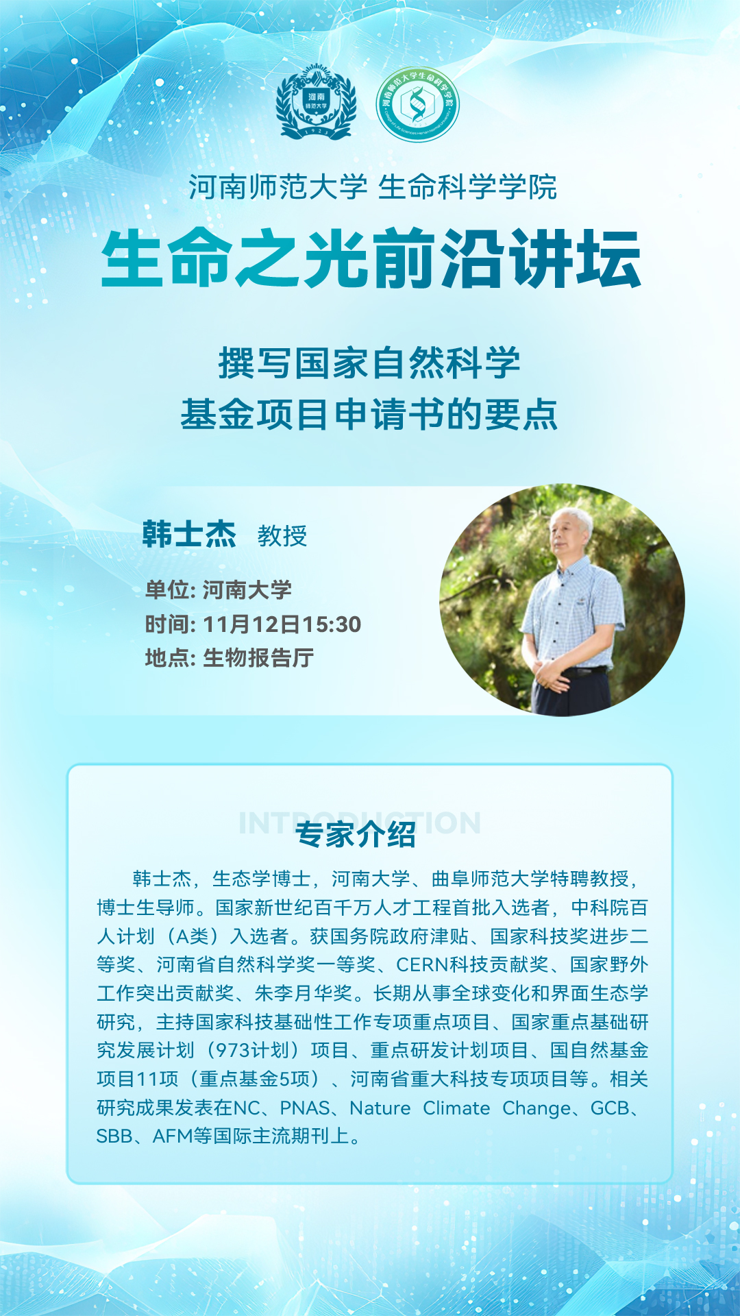 河南大学韩士杰教授将应邀做客“生命之光前沿讲坛”