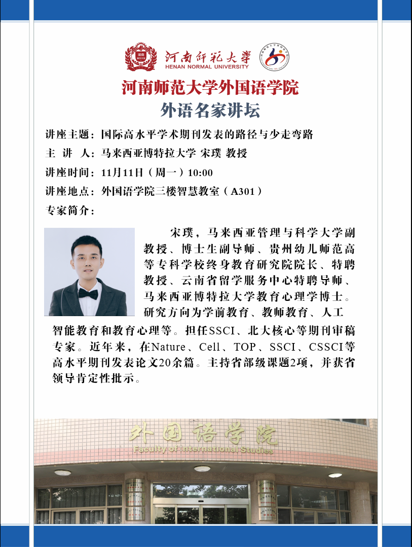 马来西亚管理与科学大学宋璞教授将应邀做客“外语名家讲坛”