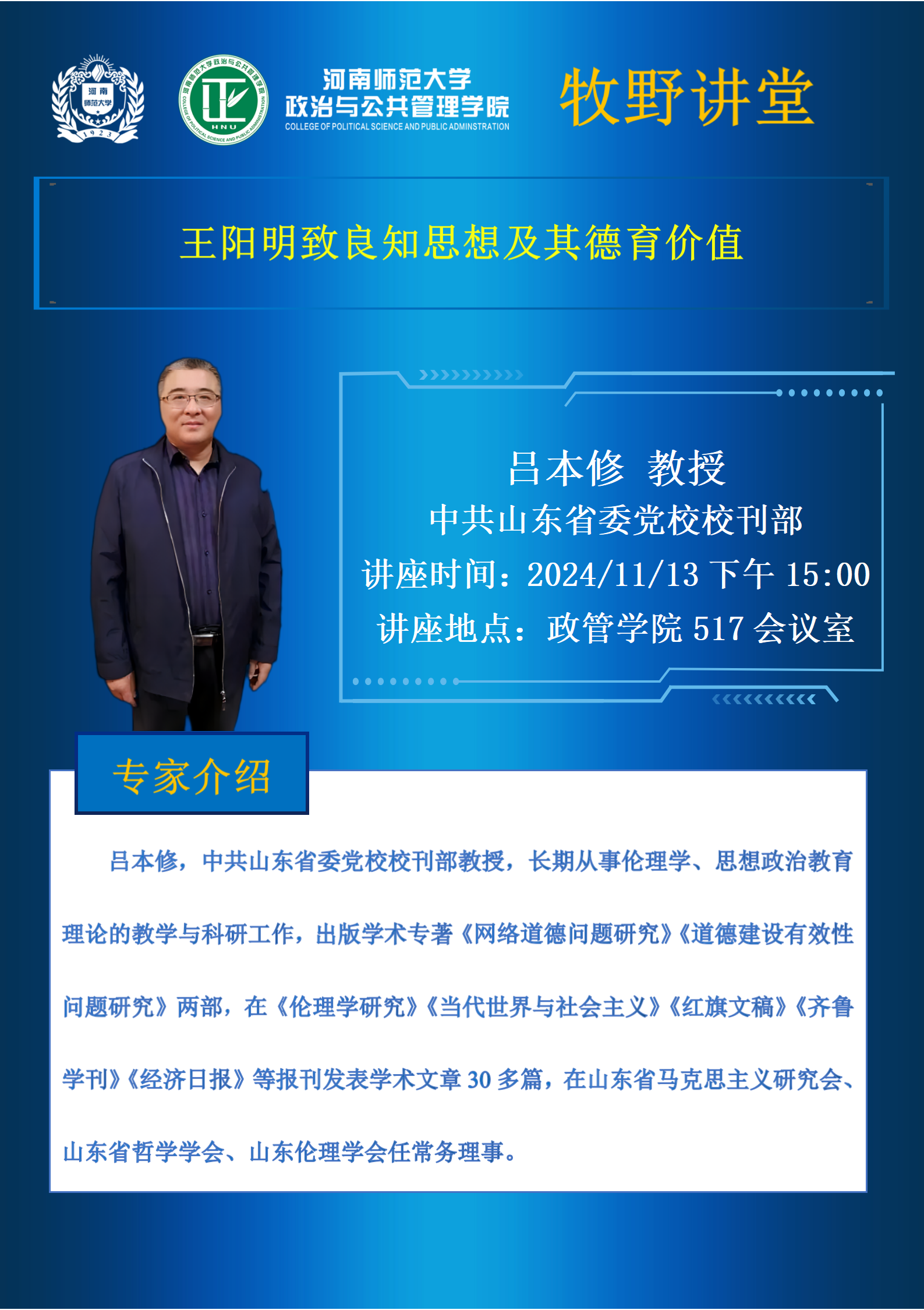 中共山东省委党校校刊部吕本修教授将应邀做客“牧野讲堂”