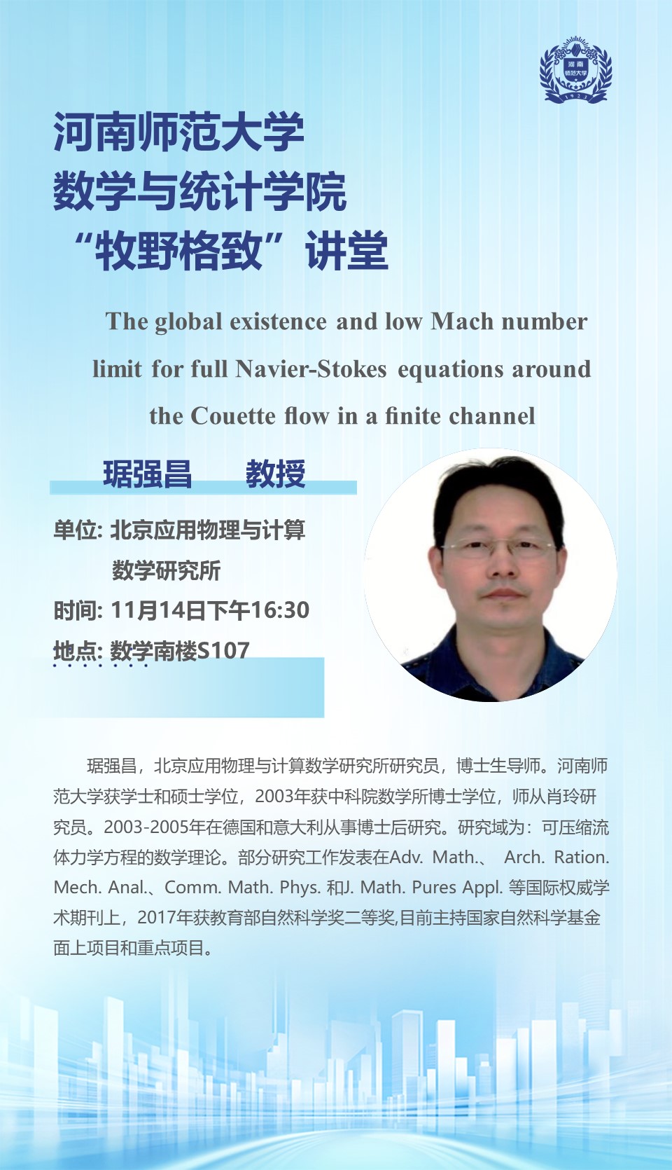 北京应用物理与计算数学研究所琚强昌教授将应邀做客“牧野格致”讲堂