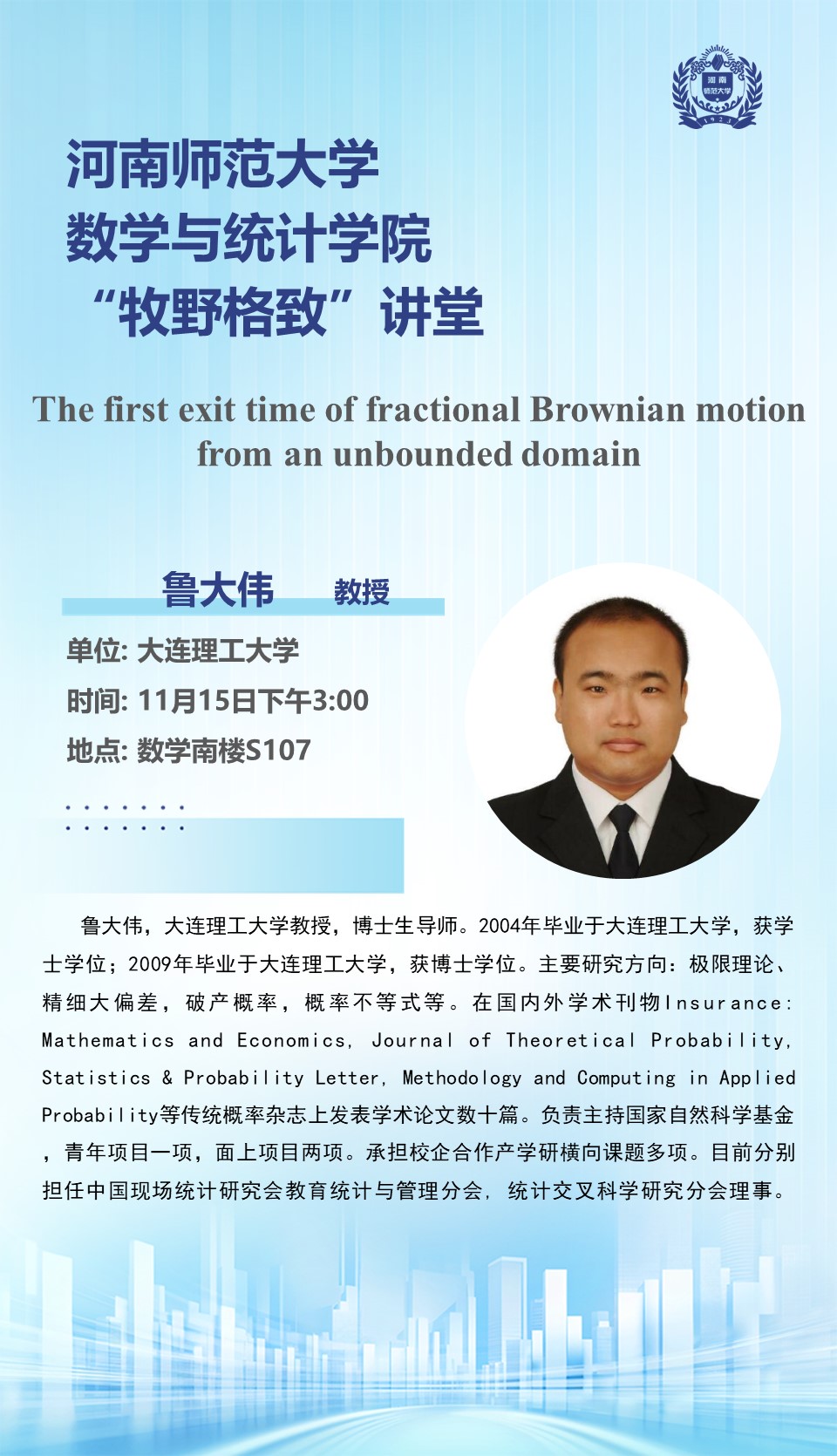 大连理工大学鲁大伟教授将应邀做客“牧野格致”讲堂