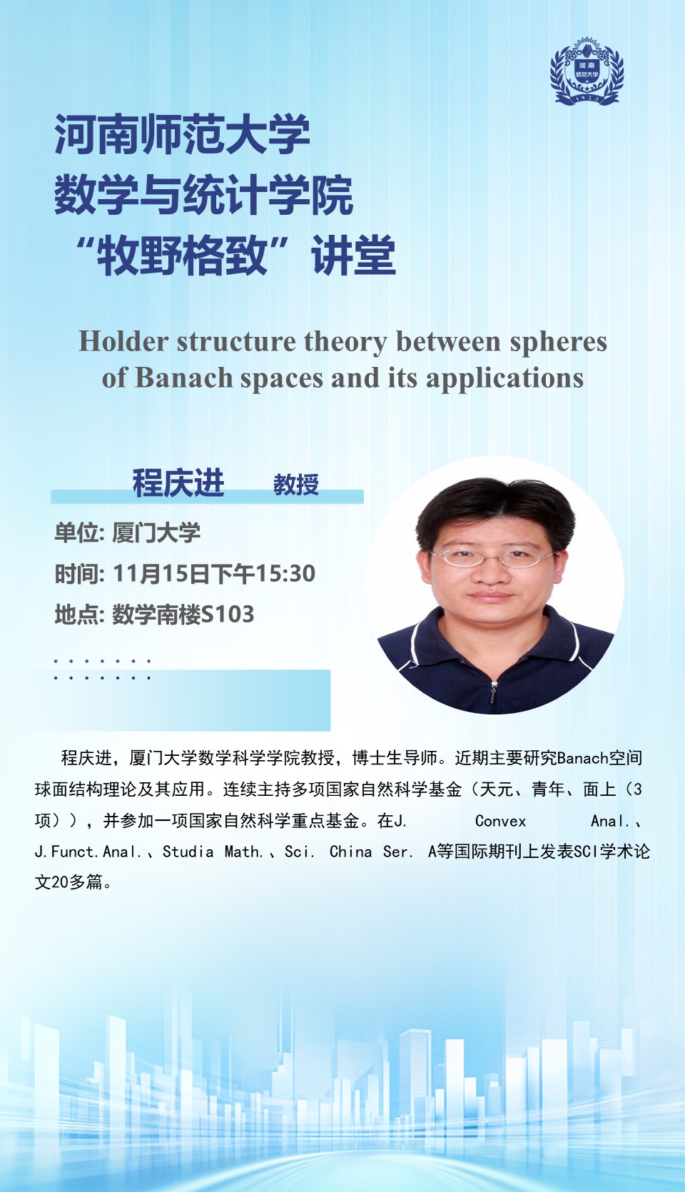 厦门大学程庆进教授将应邀做客“牧野格致”讲堂